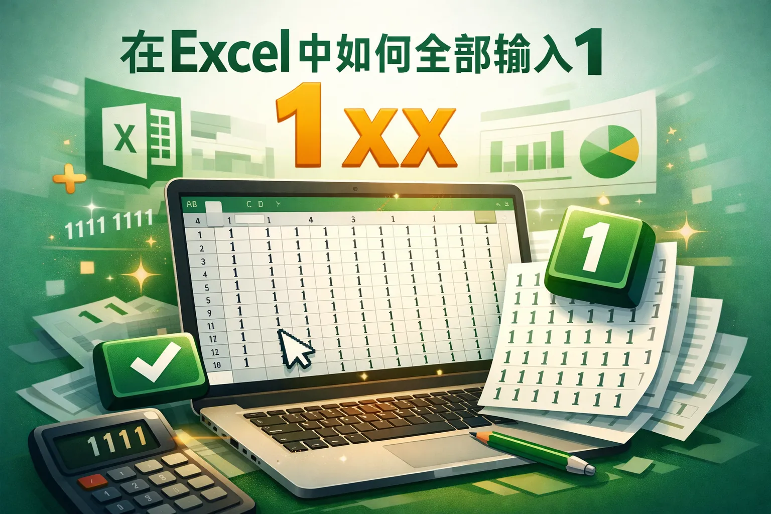 在excel中如何全部输入1 xx