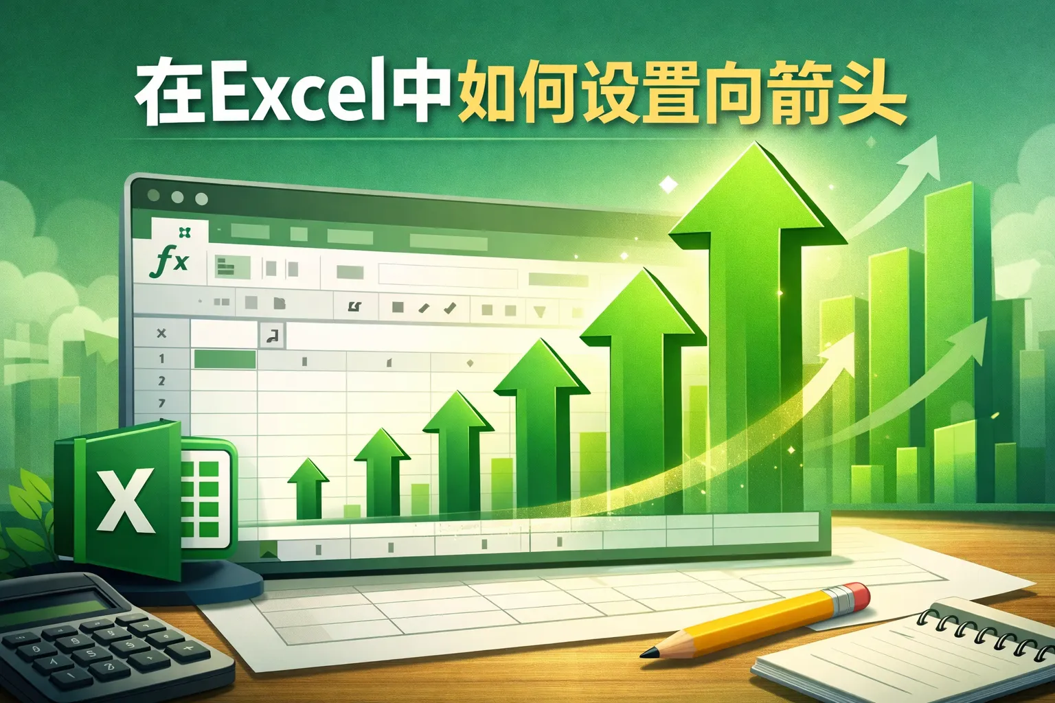 在excel中如何设置向箭头