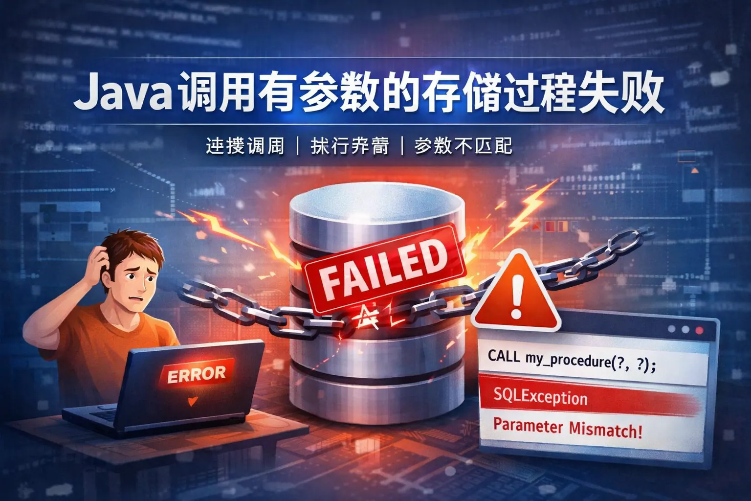Java调用带参数的存储过程失败,多数源于参数顺序或类型不匹配、JDBC驱动版本不兼容、事务未提交或权限不足等问题。排查时应先确认数据库端存储过程可正常执行,再检查CallableStatement使用方式、参数映射关系及驱动版本是否匹配,同时关注事务提交与连接管理设置。通过分层定位和规范开发流程,可以有效提高Java与数据库交互的稳定性和可维护性。