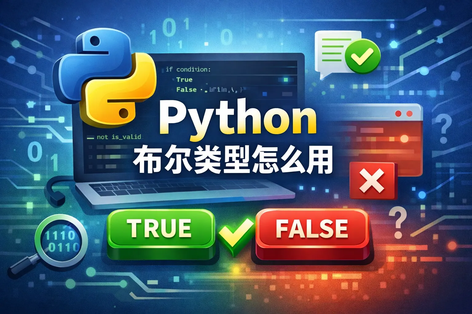 Python布尔类型用于表示True和False两种逻辑状态,是条件判断和流程控制的基础。它可以通过比较运算和逻辑表达式生成,并广泛应用于if语句、循环结构和函数返回值。Python还具有真值规则和短路机制,使布尔运算更加高效和简洁。掌握布尔类型的转换规则与使用技巧,是提升Python编程能力的重要基础。