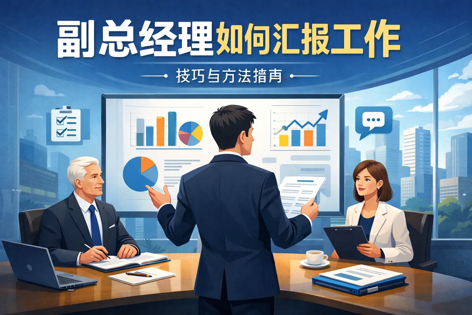 副总经理汇报工作应以“目标—指标—进展—问题—行动”为骨架,先结论后依据并直接给出决策请求,围绕OKR/KPI、现金流和风险矩阵组织信息。通过周报控节奏、月报控结构、季报控方向与专项控难题的组合,辅以统一口径的数据看板与滚动预测,提升决策效率和治理透明度。结合RACI明确责任边界,采用金字塔与SCQA呈现,使用项目协作系统和BI固化流程,实现“数据—会议—行动”闭环,使汇报真正服务于管理决策与执行落地。