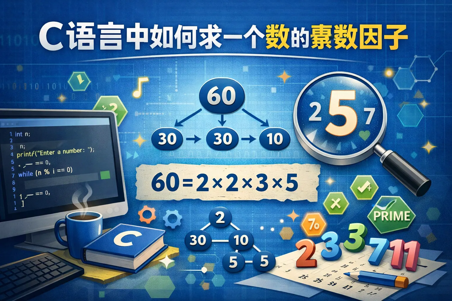 本文系统讲解了如何使用C语言实现一个整数的质因数分解,核心方法是基于试除法不断用可能的质数对目标数进行整除,并通过平方根优化将时间复杂度控制在O(√n)。文章详细分析了算法原理、复杂度对比、性能优化技巧及大整数场景下的扩展思路,并给出了完整代码示例。对于日常开发与算法学习场景,优化后的试除法已足够高效且实现简单,是理解数论算法的重要基础。