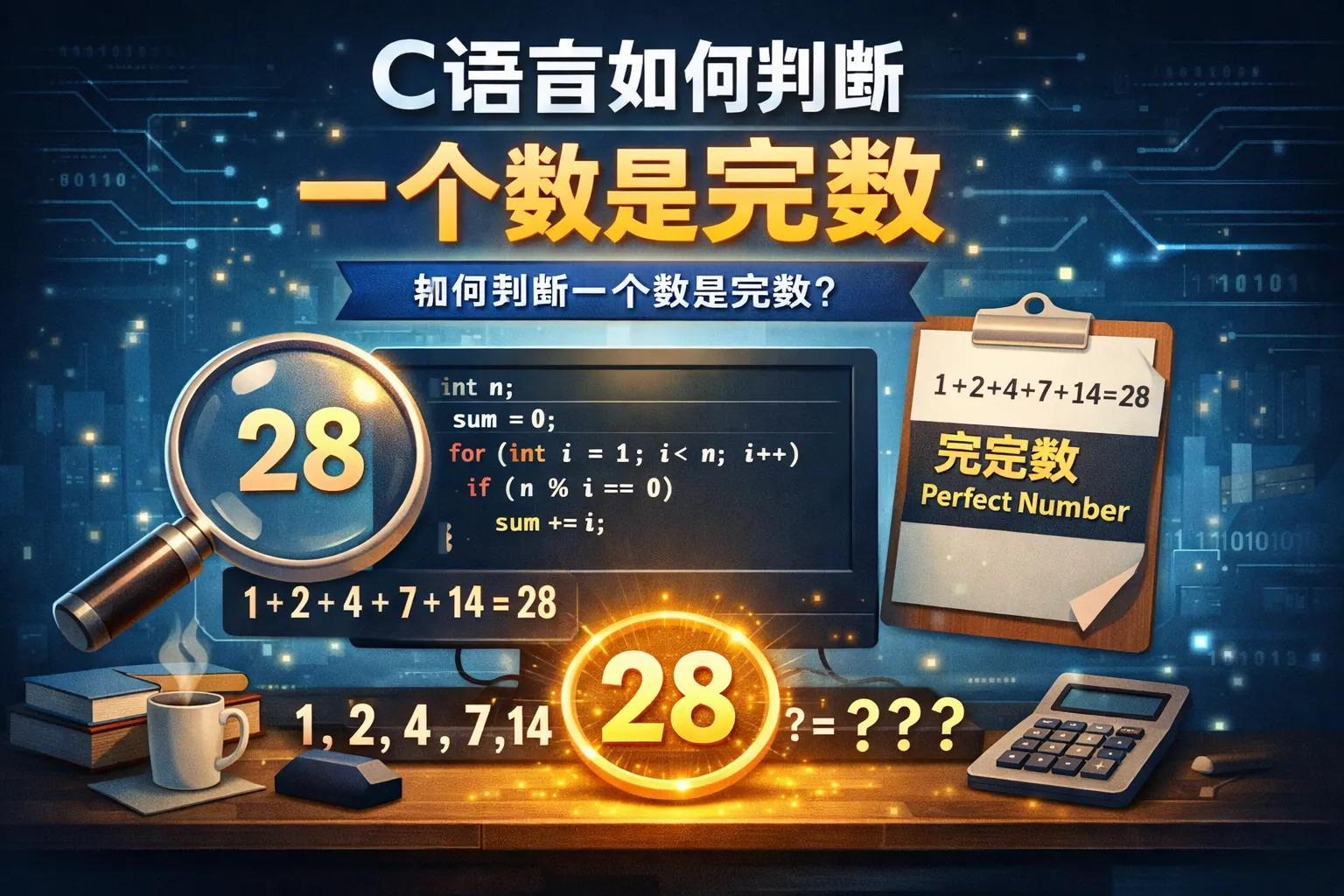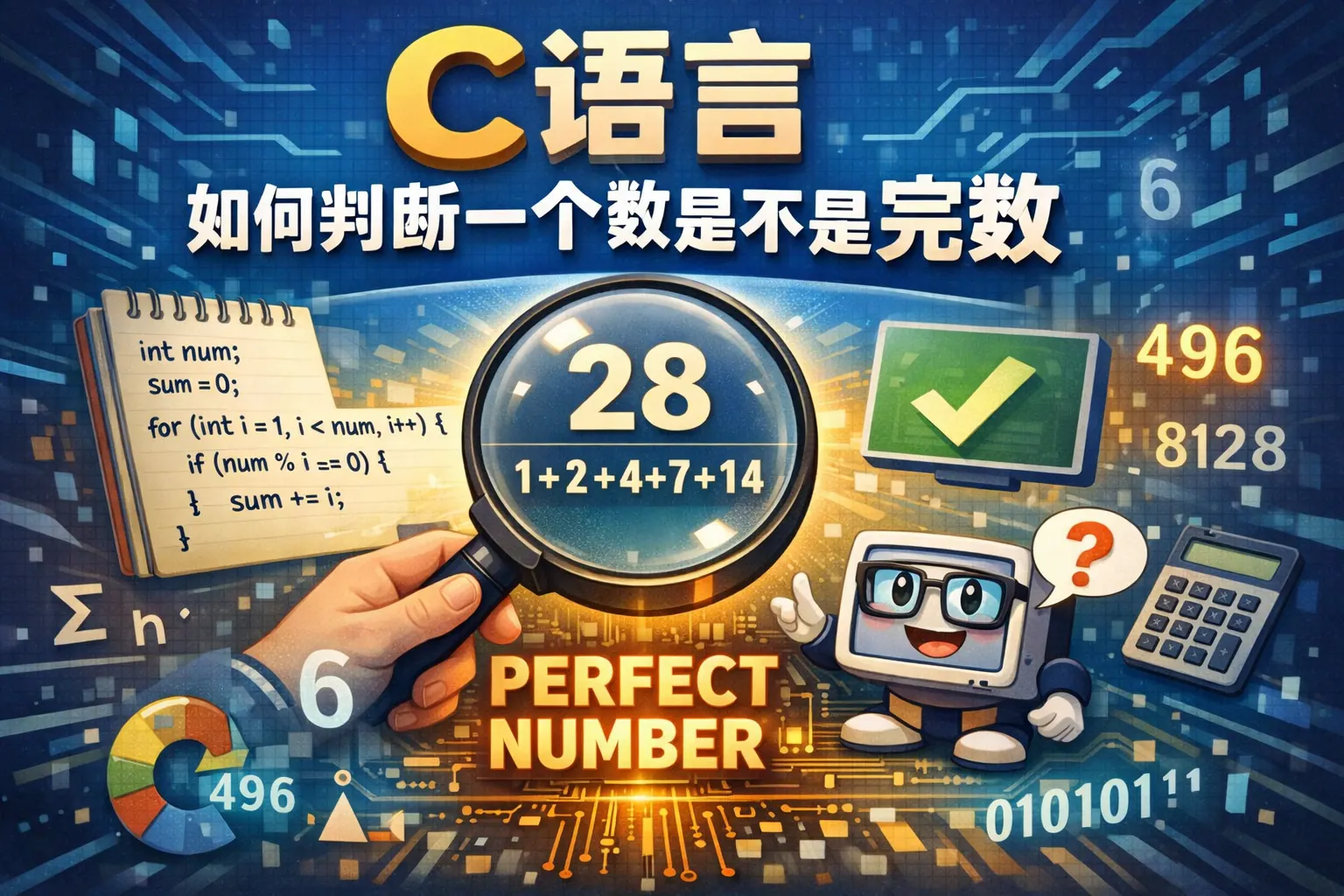 本文系统讲解了在C语言中判断一个整数是否为完全数的方法,核心思路是计算所有真因子之和并与原数比较。文章从数学定义出发,给出基础实现代码与优化版本,分析时间复杂度差异,并通过表格对比不同算法性能。同时介绍批量查找方法、常见错误、调试技巧以及完全数的数学背景,帮助读者全面掌握完全数判断的编程实现与优化策略。