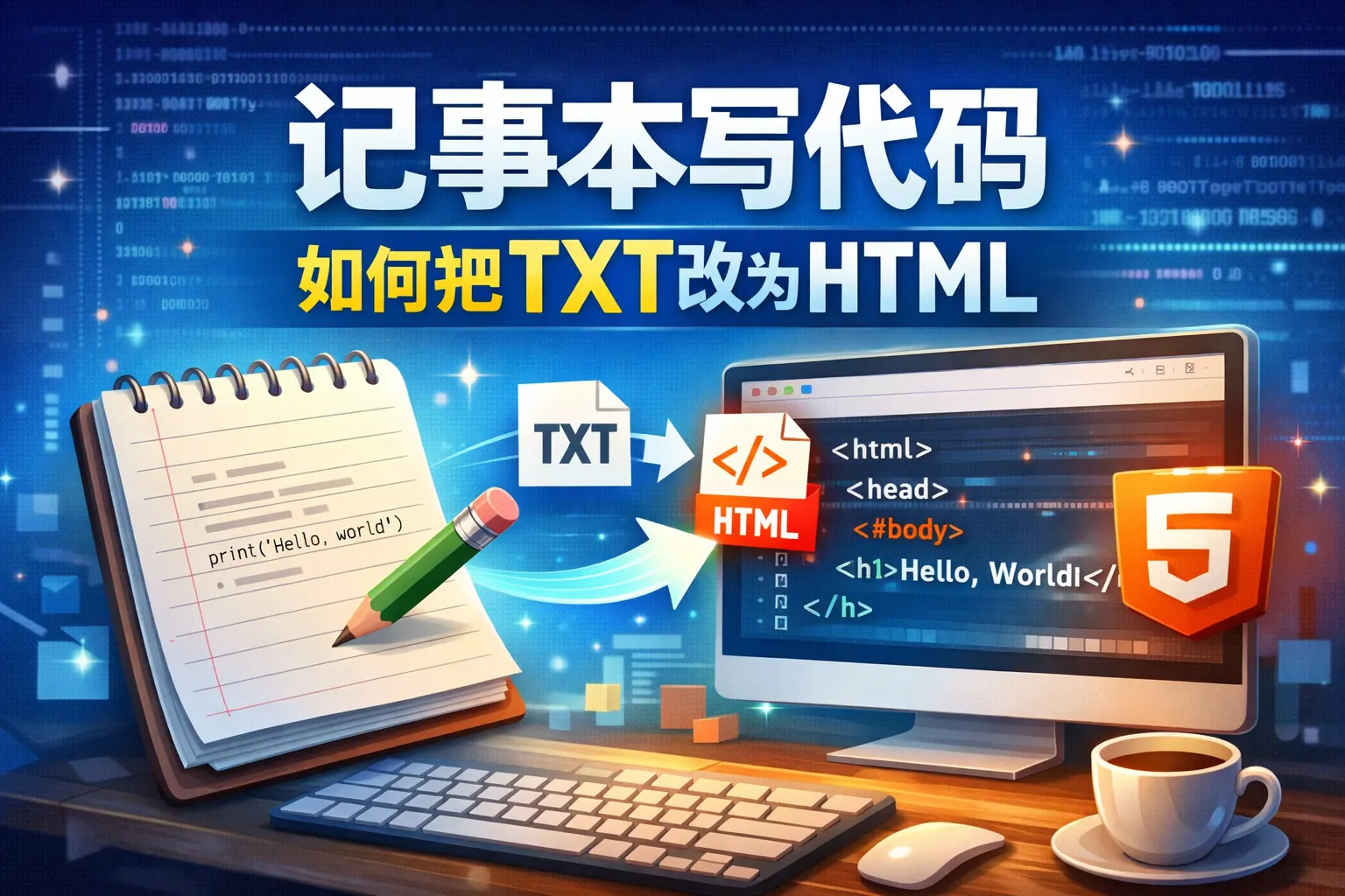 将 txt 文件改为 html 的关键不只是修改扩展名,而是正确保存为 .html 格式、设置 UTF-8 编码并写入标准 HTML 结构代码。通过记事本“另存为”选择“所有文件”并输入 .html 扩展名,可以避免生成 html.txt 文件。完成后用浏览器打开验证即可。理解 TXT 与 HTML 的区别,是学习网页开发的基础步骤。