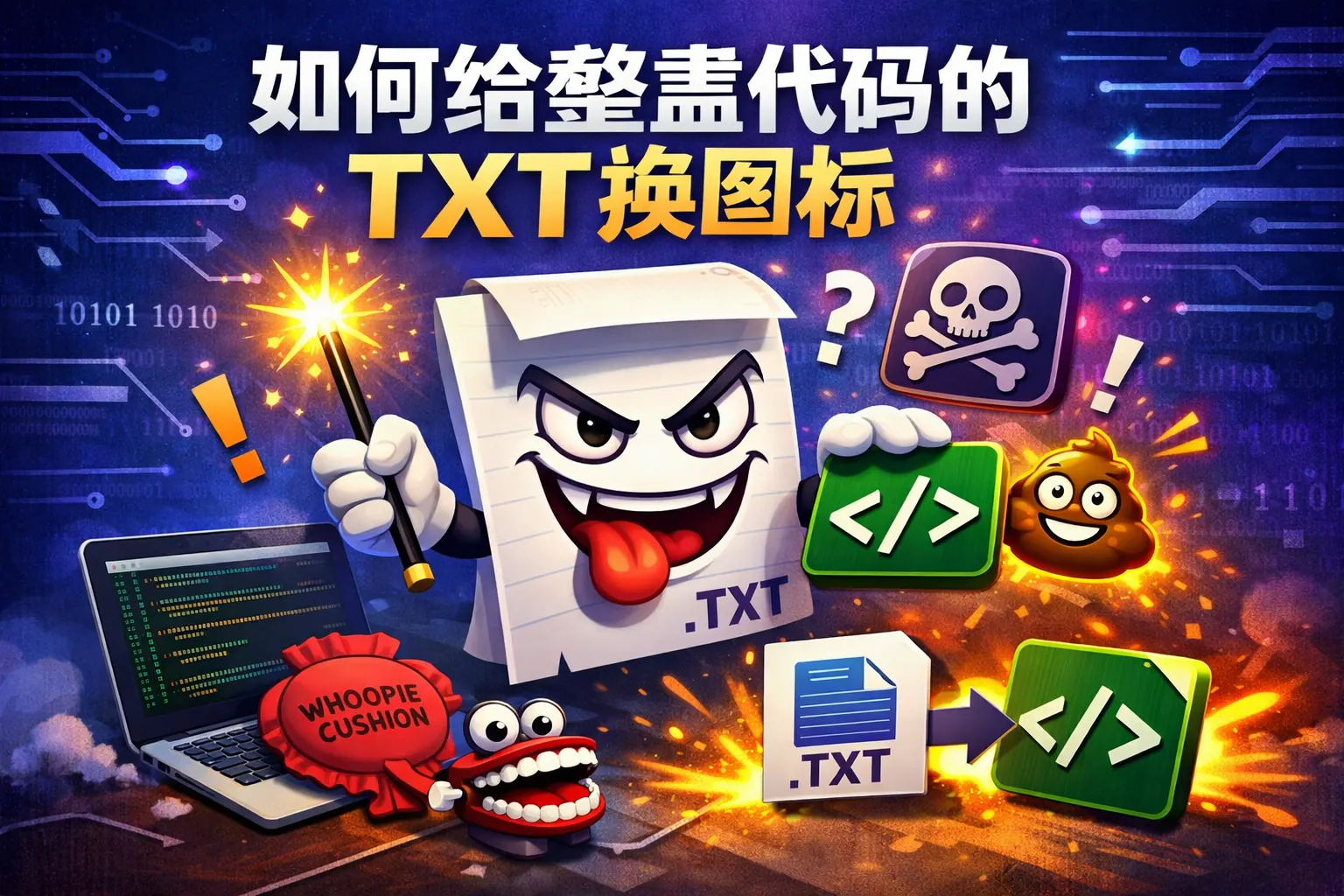 给整蛊代码的txt文件换图标,本质上是通过修改文件关联或使用快捷方式改变显示效果,而不是修改文本本身。常见方法包括创建快捷方式替换图标、修改系统默认txt图标、利用扩展名伪装以及封装为bat或exe文件。相比修改注册表或伪装扩展名,使用快捷方式更安全、可控。操作时应注意系统安全与合规风险,避免在企业环境中误导他人或触发安全机制。未来系统安全策略加强后,文件伪装空间将进一步缩小。