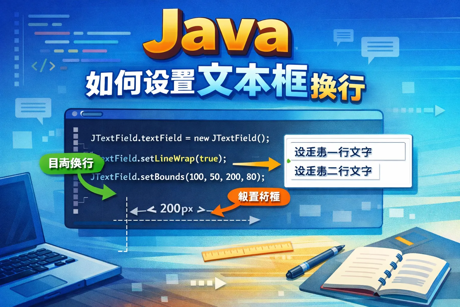 java如何设置文本框位置换行