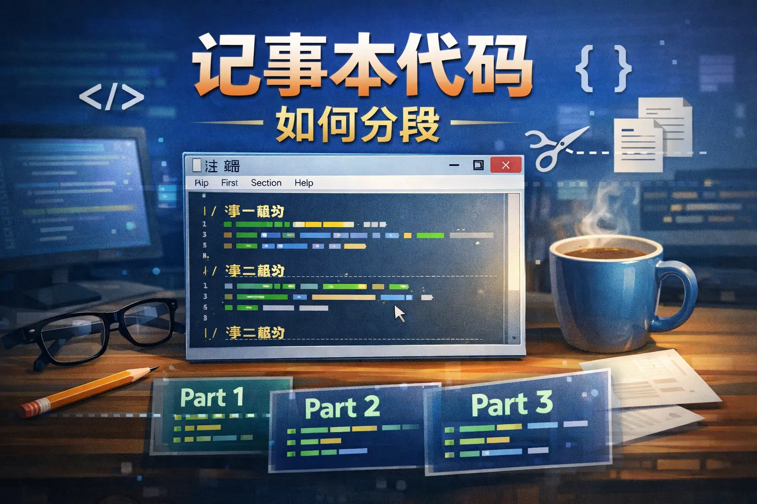 记事本代码如何分段