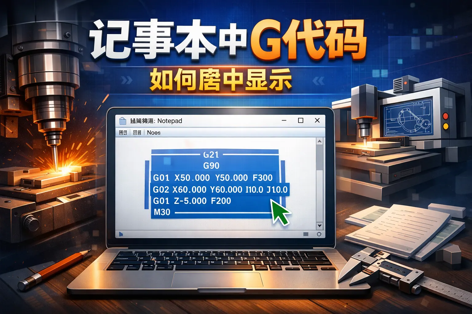 记事本中G代码如何居中显示