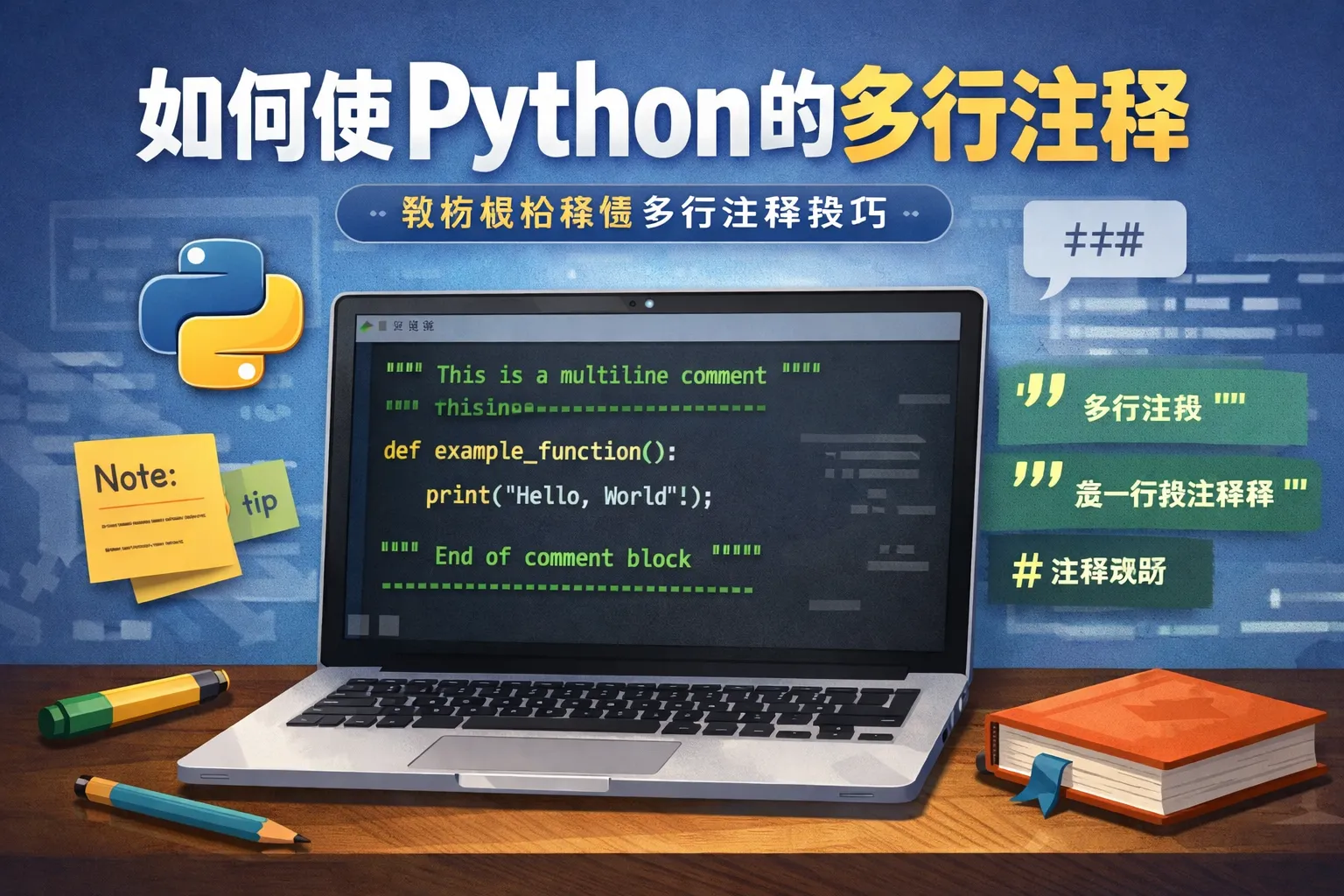 Python没有语法级的多行注释符。实现多行注释的合规方式有两种:用多行“#”书写块注释解释实现;在模块、类、函数的首句使用三引号docstring记录接口语义。未赋值的三引号字符串不应作为注释使用,会带来字节码常量与内存负担。结合PEP 8与PEP 257,使用docstring生成文档、在工程中通过静态检查与协作流程固化规范,可显著提升可读性与维护效率。