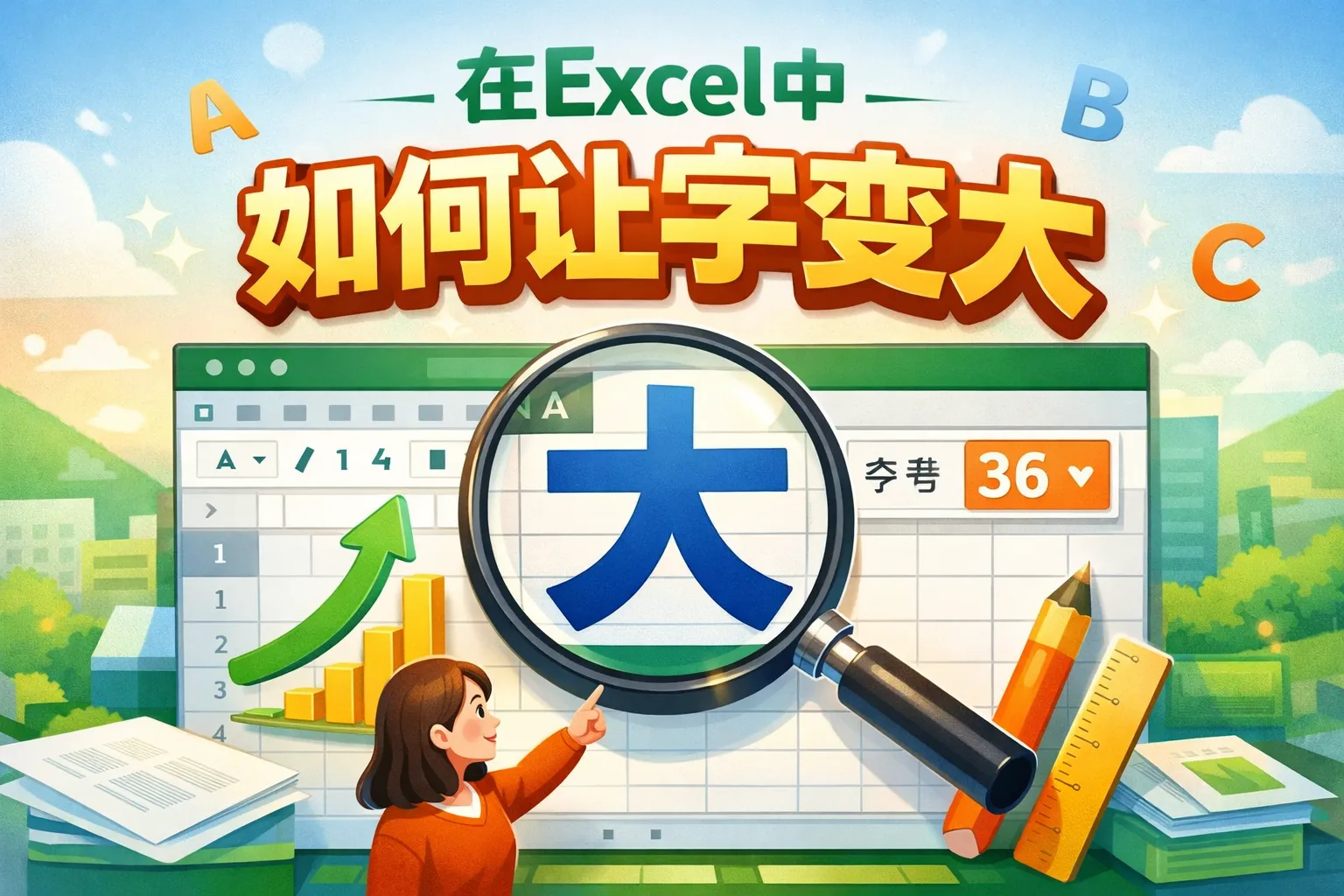 在excel中如何让字变大