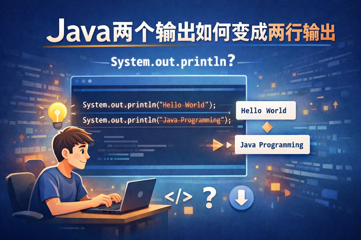 java两个输出如何变成两行输出