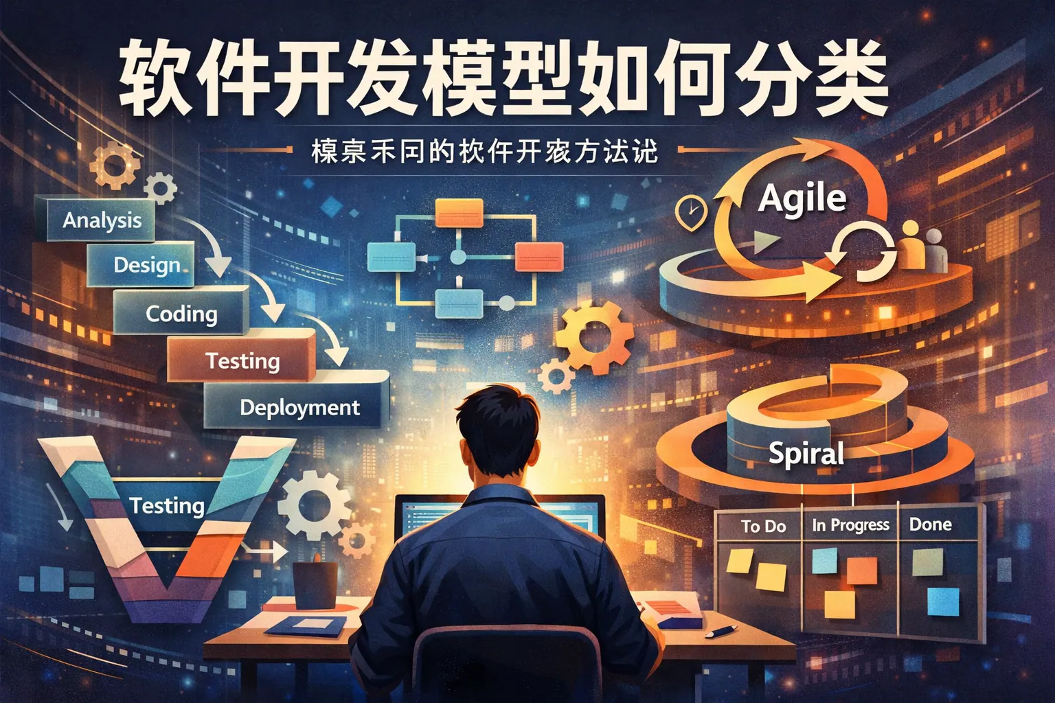 软件开发模型的分类主要基于流程结构、需求稳定性、风险控制方式和交付节奏等维度展开。常见类型包括传统线性模型、改进型阶段模型、迭代与增量模型、风险驱动模型、敏捷导向模型以及持续型和混合型模型。不同分类并不存在绝对优劣,而是各自适用于不同的不确定性水平、组织形态和业务场景。随着软件工程实践的发展,模型分类正从单一方法对比转向情境化组合,强调灵活适配与持续改进能力。