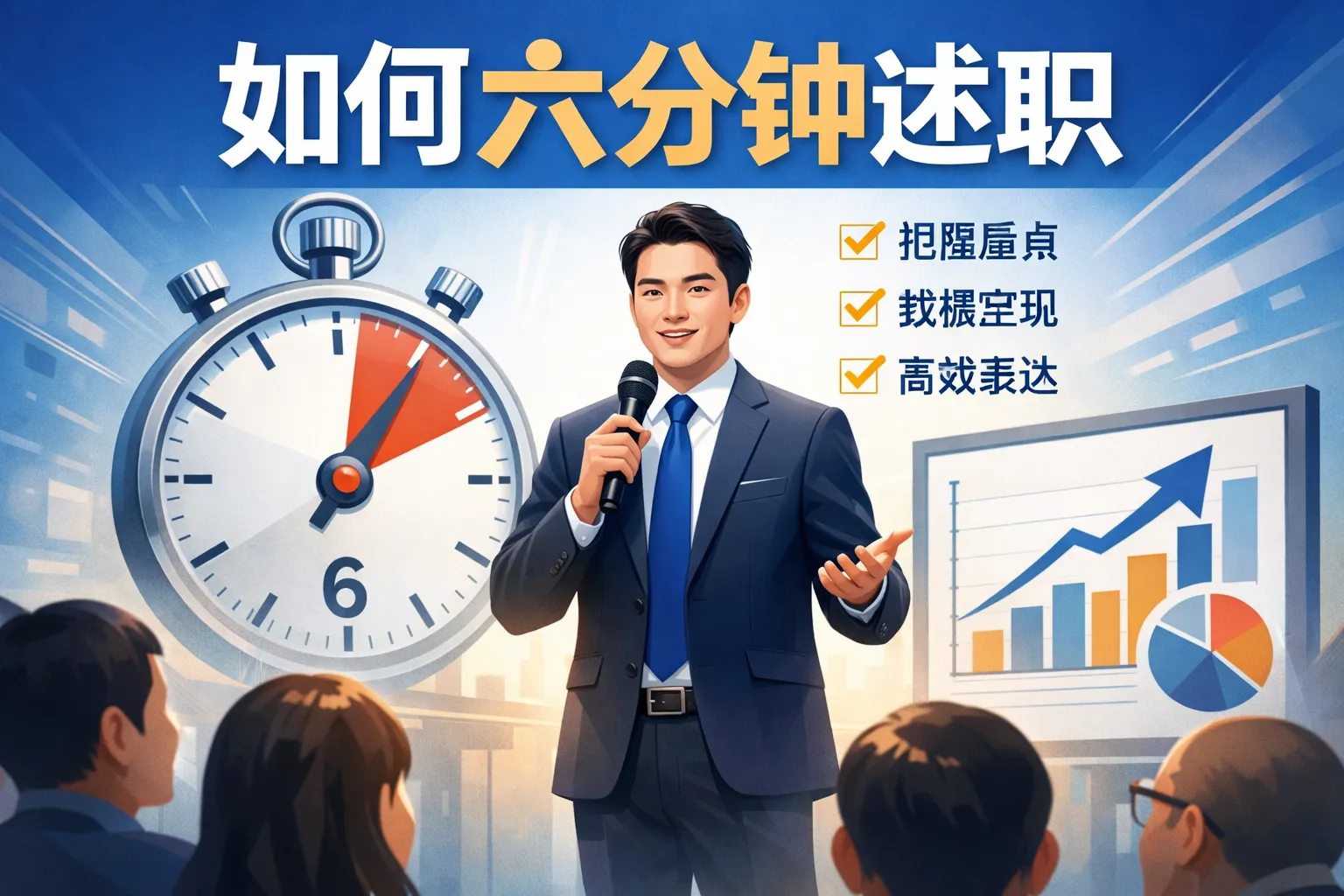 本文围绕六分钟述职展开,从底层逻辑出发拆解了评委注意力分配规律,构建了30秒开场、四分钟主体、30秒收尾的黄金时间分配模型,通过结构化框架对比、权威行业报告支撑,给出了开场话术、主体内容布局、收尾技巧等落地方法,同时讲解了不同述职场景的适配调整方案和临场应急技巧,帮助职场人在有限时间内精准传递核心价值,提升述职通过率。