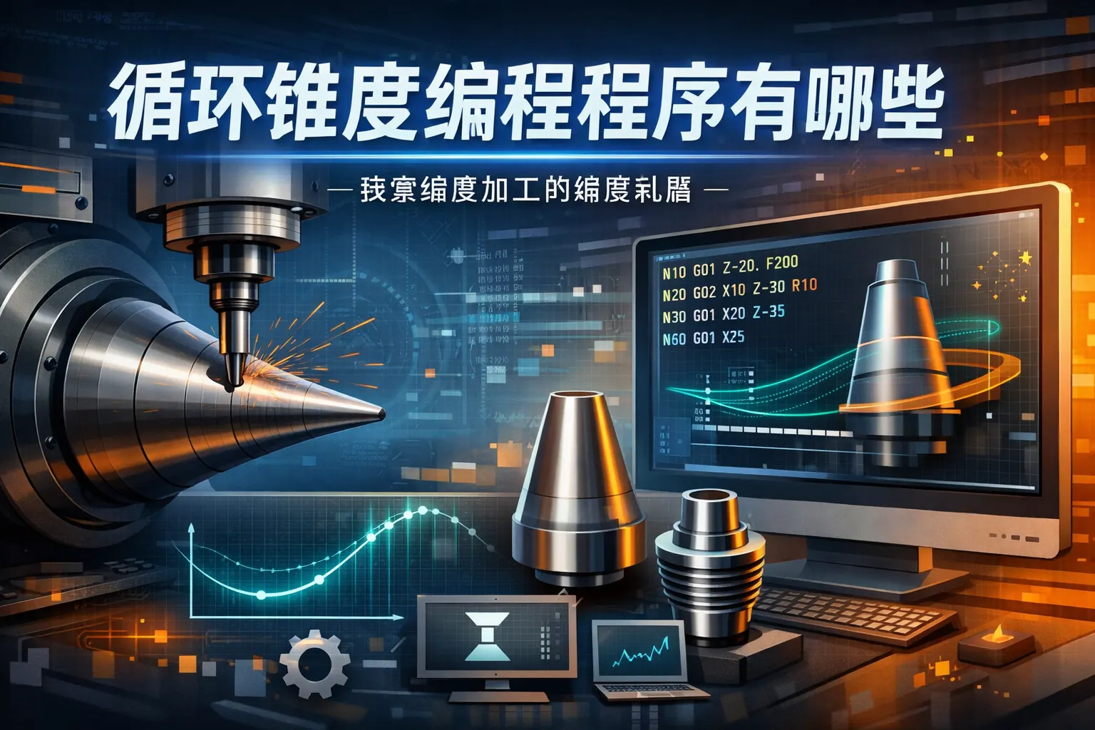 循环锥度编程程序主要包括固定循环指令、宏变量循环、子程序调用以及CAD/CAM自动生成等方式,不同方法适用于不同复杂度和批量需求的锥度加工场景。标准锥体加工通常采用固定循环指令,而复杂锥面更适合宏程序或自动生成刀路。随着智能制造发展,循环锥度编程正向参数化、自动化与集成化方向演进。