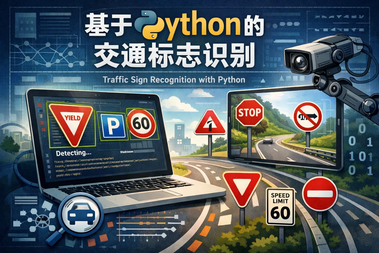 本文系统阐述了基于 Python 的交通标志识别技术,从应用背景、系统流程、算法路线到工程实践进行了全面分析。文章指出,Python 凭借完善的计算机视觉与深度学习生态,已成为交通标志识别研究与原型开发的主流语言。通过对传统方法与深度学习方法的对比,以及对数据集、检测与分类模型的深入解读,展示了该技术在准确性、可扩展性和工程落地方面的优势。同时结合真实数据集与实践经验,分析了现实部署中的挑战与解决思路,并对未来发展趋势进行了展望。