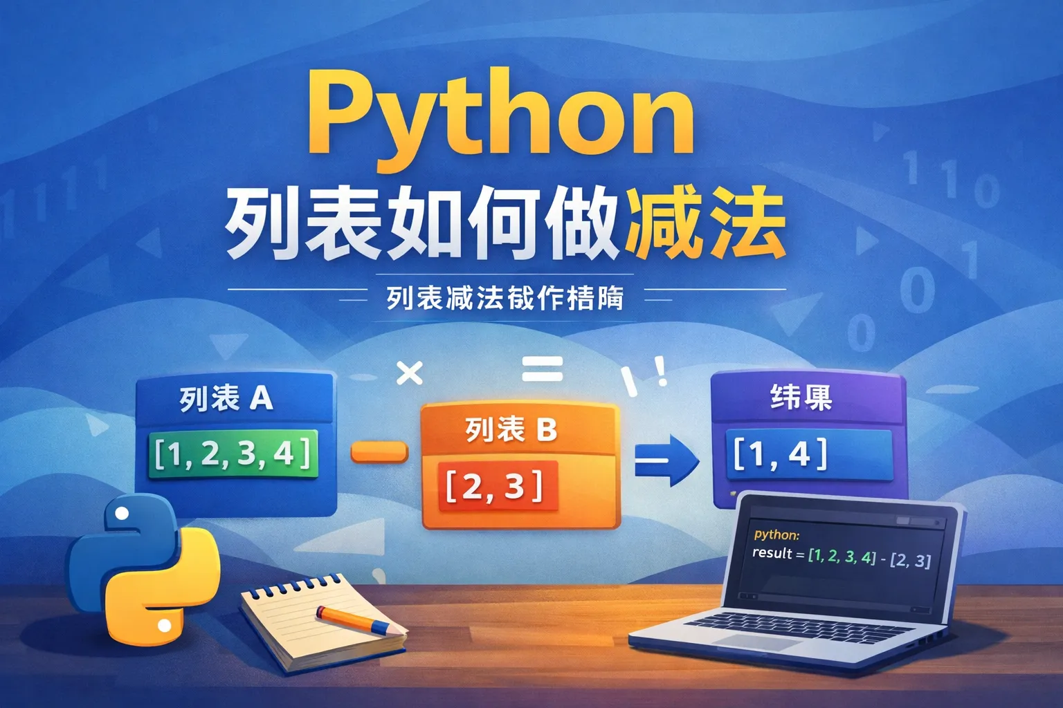 Python 列表不支持“-”,要做“减法”需按语义选方案:集合差集用于唯一成员差、列表推导式(配合把 b 转为 set)用于保留顺序的过滤、collections.Counter 表达“多重集差”以准确减去次数,数值向量的逐元素相减应改用 NumPy 数组的“-”。根据是否保留顺序、是否考虑重复、性能诉求来选择,并通过封装与测试避免语义误用与复杂度陷阱。
