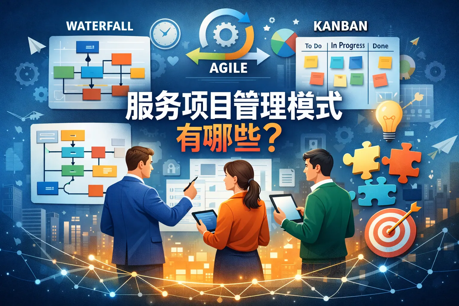 服务项目管理模式主要包括瀑布型、敏捷型、混合型、矩阵型、PMO集中管控、外包联合、SLA驱动以及平台化模式等。不同模式在灵活性、管控强度和适用场景方面各有特点,企业应根据服务复杂度、客户需求稳定性与组织规模进行选择。未来服务项目管理将向数字化、平台化与智能化方向发展,多模式融合将成为主流趋势。