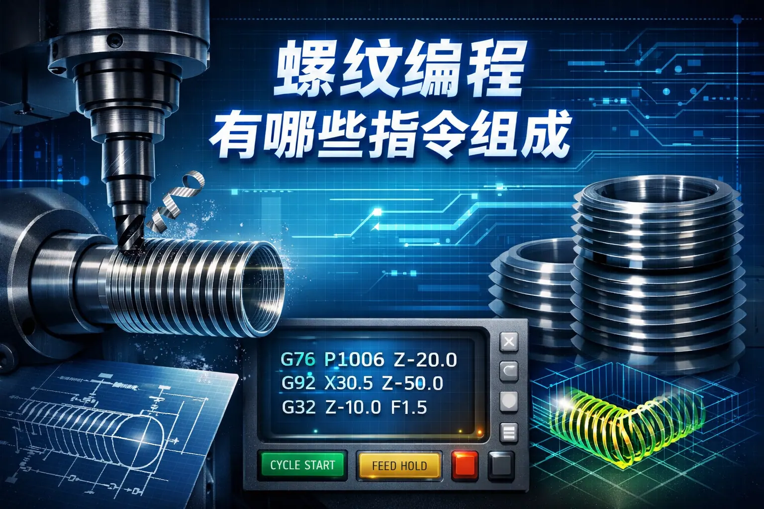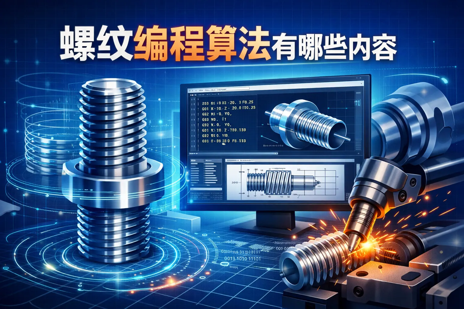 螺纹编程算法涵盖几何建模、螺距与导程计算、刀具轨迹生成、插补控制、误差补偿以及多轴同步控制等核心内容,是数控加工实现高精度螺纹制造的技术基础。文章系统解析了各类算法模型与计算公式,并结合标准规范与加工实践进行对比说明,指出未来螺纹编程将向智能化、自适应优化与数字仿真方向发展。理解这些算法体系,有助于提升加工质量与生产效率。