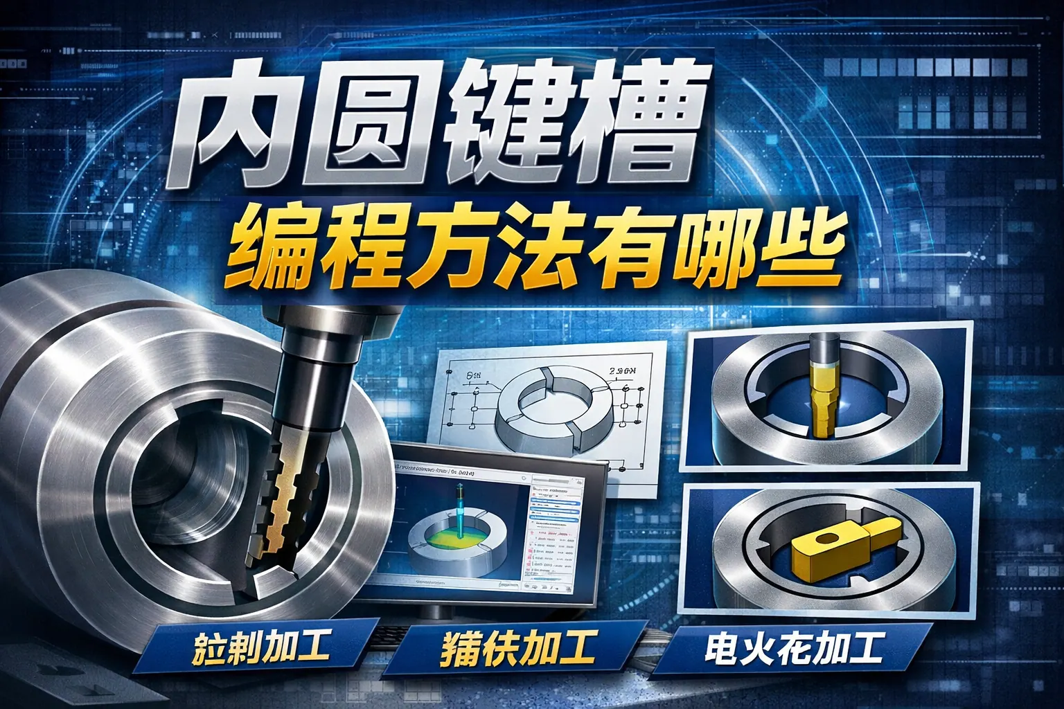 内圆键槽的编程方法主要包括手工G代码编程、CAM自动编程、宏程序参数化编程、固定循环编程以及拉削或电火花等特殊加工编程方式。不同方法在加工效率、灵活性与批量适应性方面各有特点。手工编程适合小批量与现场调整,CAM自动编程更适用于复杂与批量生产,宏程序适合多规格重复加工场景。未来趋势将向智能化、自动化与数字化管理方向发展,通过优化刀具路径与参数控制提升加工质量与效率。