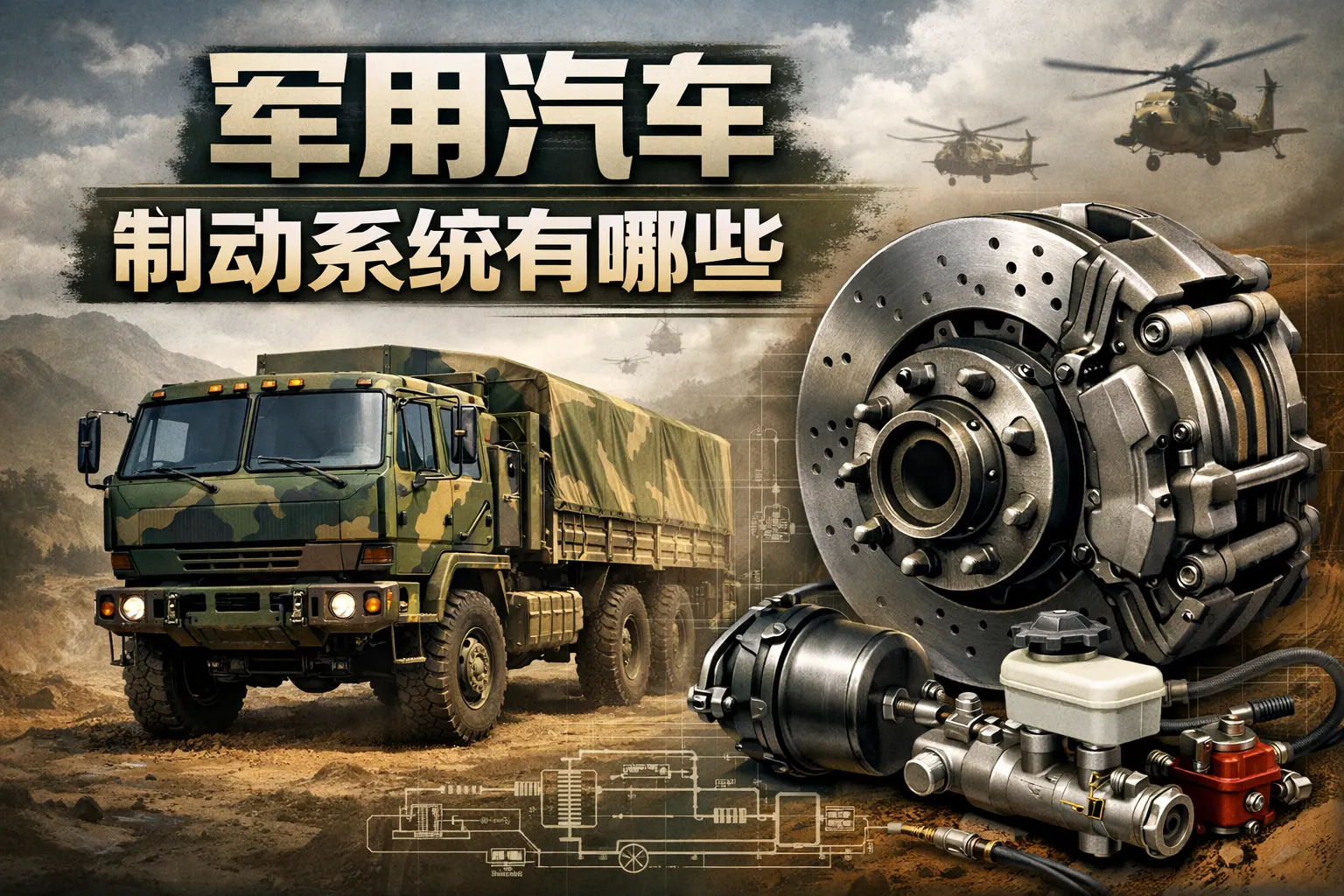 军用汽车制动系统主要包括气压制动、液压制动、气液复合制动、电子控制制动系统以及多种辅助制动装置,其核心特点是高负载能力、强冗余设计与复杂环境适应性。与民用车辆相比,军用制动系统更强调可靠性与战场生存能力。随着电子控制与电动化技术发展,军用制动系统正向智能化、集成化与远程诊断方向演进。