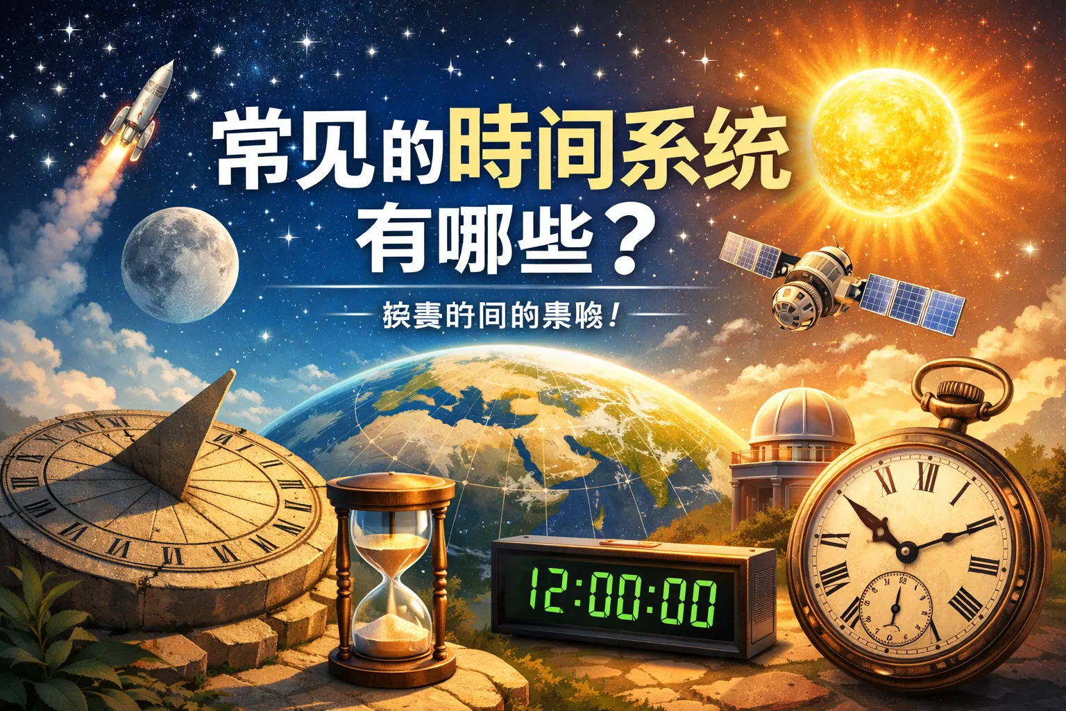 世界时间系统主要包括基于地球自转的世界时(如UT1)、基于原子振荡的国际原子时(TAI)与协调世界时(UTC),以及面向卫星导航与航天应用的工程时间系统(如GPS时间)。其中UTC是全球民用时间核心,兼顾原子精度与地球自转修正;TAI提供最高稳定性基础;UT1反映真实自转变化。随着闰秒改革与光学原子钟发展,未来时间体系将更加稳定与高精度化。