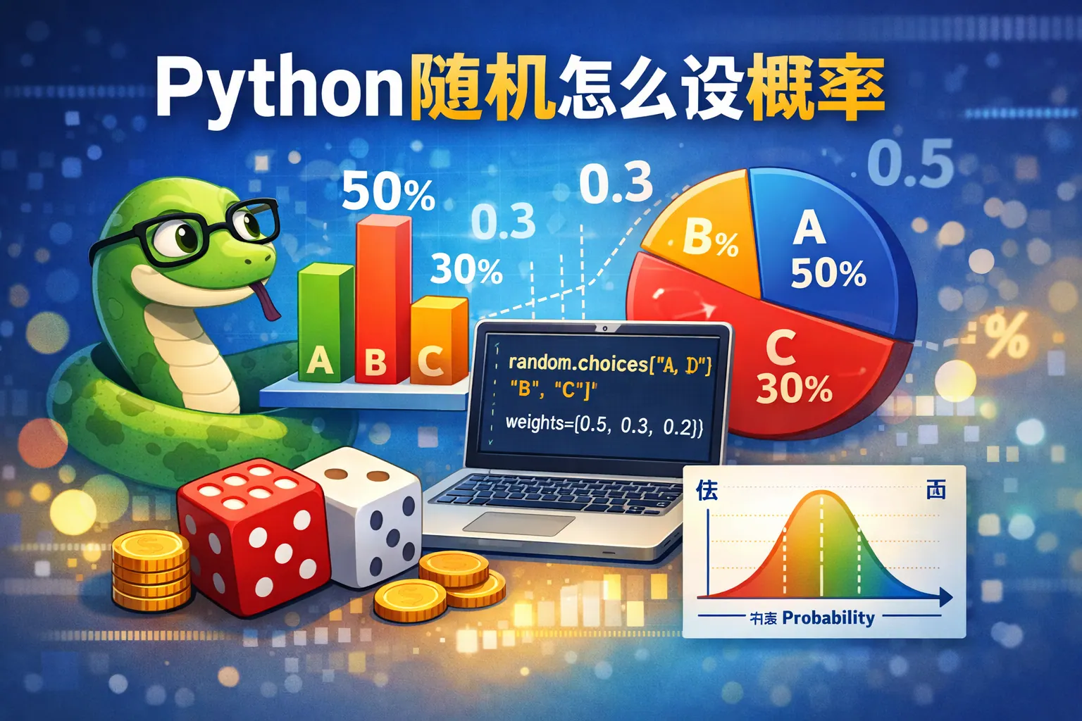 在 Python 中设置随机概率可以通过区间判断、权重分配或概率分布函数实现,常用方法包括 random.random() 控制单一事件概率、random.choices() 设置多选项权重,以及 numpy.random.choice() 实现精确概率分布。不同方法适用于不同场景,标准库适合基础应用,NumPy 更适合大规模模拟与科学计算。理解概率区间映射和权重归一化原理,是实现稳定随机系统的关键。随着数据科学发展,概率建模能力将越来越重要。
