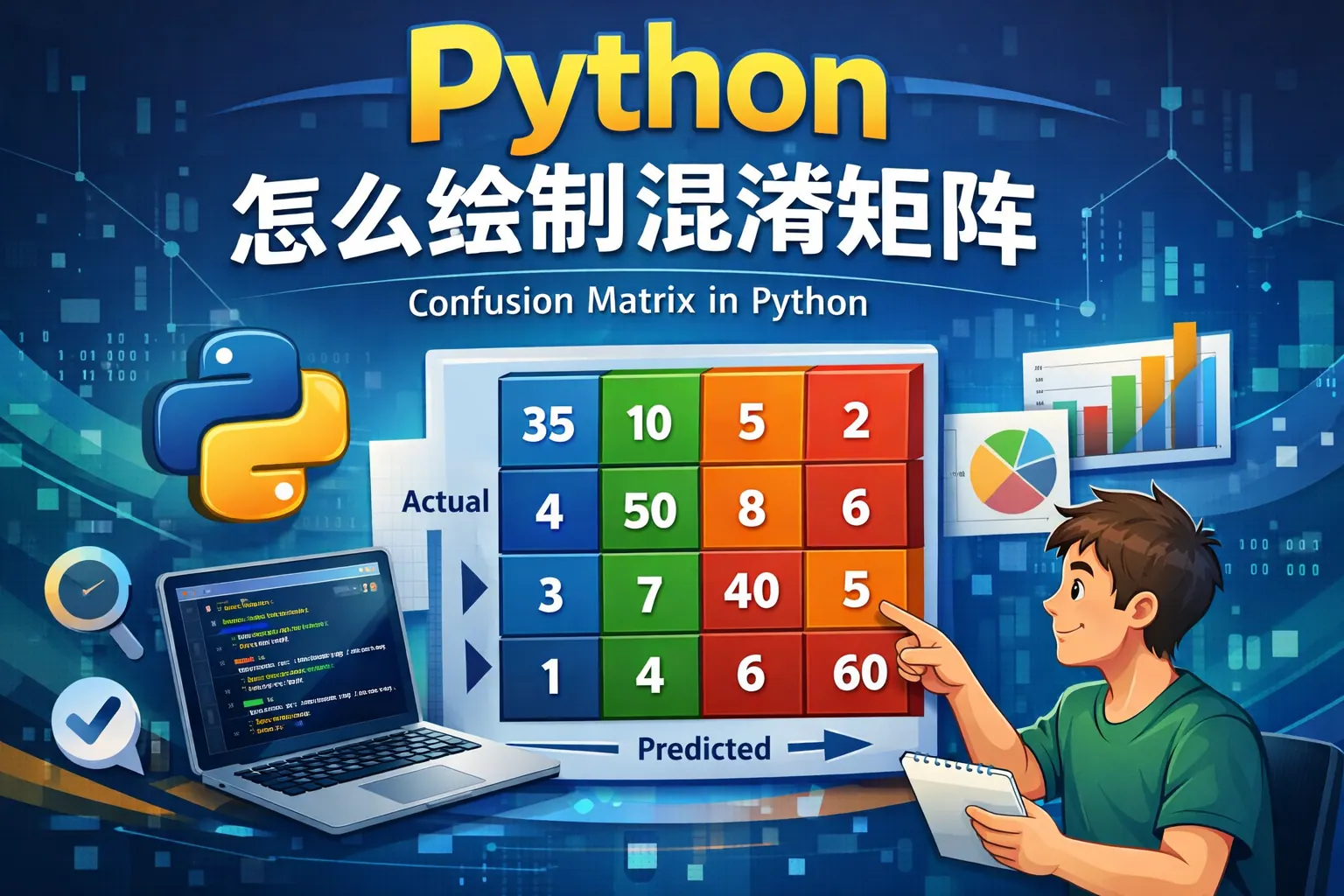 在Python中绘制混淆矩阵通常通过scikit-learn计算矩阵数据,再结合Matplotlib或Seaborn进行可视化展示。文章系统讲解了混淆矩阵的概念、计算方法、基础绘图方式、热力图美化技巧、归一化处理、多分类应用及与精确率、召回率等指标的结合分析,帮助读者全面掌握分类模型评估流程与实战技巧。