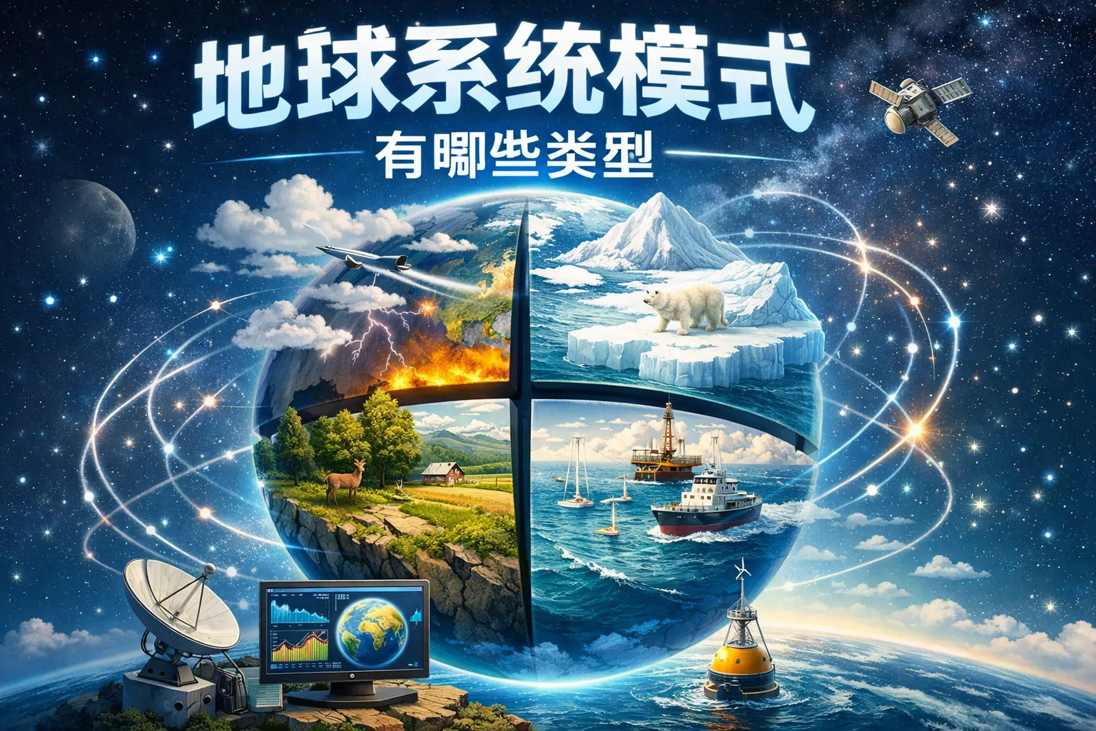地球系统模式主要包括大气环流模式、海洋环流模式、陆面与生态模式、耦合气候模式、综合地球系统模式以及区域地球系统模式等类型。不同类型在模拟对象、耦合程度与应用场景上各有侧重,从单一圈层物理模拟发展到包含生物地球化学循环与人类活动的综合耦合系统。随着计算能力提升与多模式集合方法应用,地球系统模式正向高分辨率、强耦合和智能化方向演进,成为气候预测与政策评估的重要科学基础。