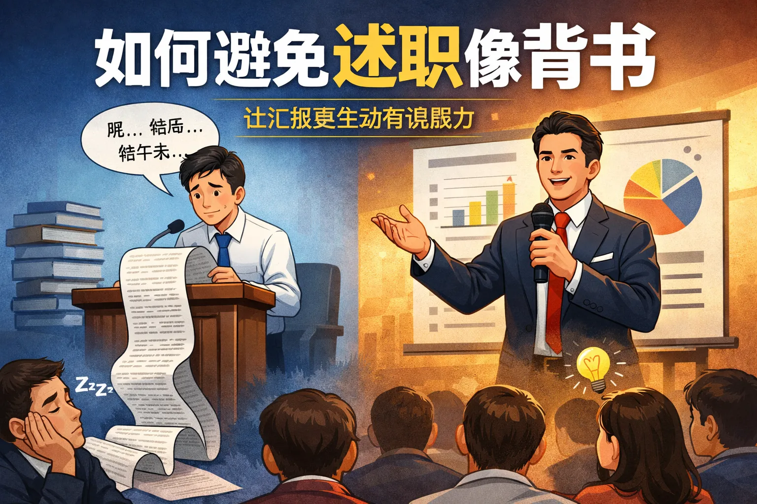 本文从分析述职背书感的核心诱因入手,拆解了搭建非背书式述职框架的方法,结合权威行业调研数据和对比表格,分享了场景化表达、互动环节设计、受众适配策略、提前演练等实战技巧,帮助职场人摆脱背诵式述职误区,打造能够突出个人价值的高质量述职内容,并通过事后复盘持续优化述职逻辑。