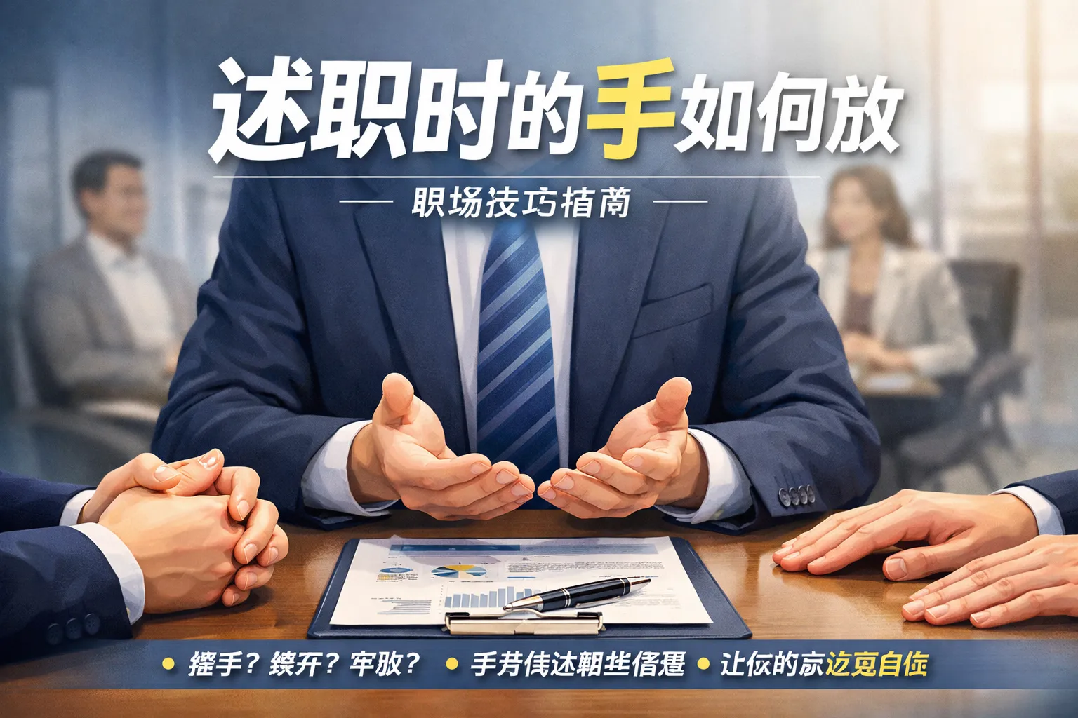 这篇文章结合职场实战经验和权威行业报告,拆解了述职手部姿势的核心逻辑,针对线下面对面、线上视频、大型公开三类不同场景制定了手部摆放标准,总结了无意识小动作、过度刻意姿势、跨文化禁忌三类常见雷区,同时介绍了手部姿势与内容、语调的联动技巧以及新手可快速上手的训练方法,帮助述职者通过规范手部动作提升专业形象和述职表现。