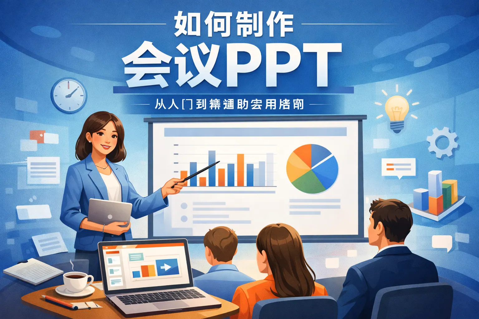 制作会议PPT的关键在于目标清晰、结构合理与信息精炼。高质量会议PPT应围绕会议目的设计内容框架,采用结论先行的逻辑方式,通过数据可视化与简洁版式提升表达效果,同时控制页数与信息密度,避免文字堆砌。视觉统一、图表清晰以及演讲与PPT配合得当,是提升会议沟通效率的重要因素。掌握结构化思维与表达技巧,能够显著增强会议说服力与专业形象。