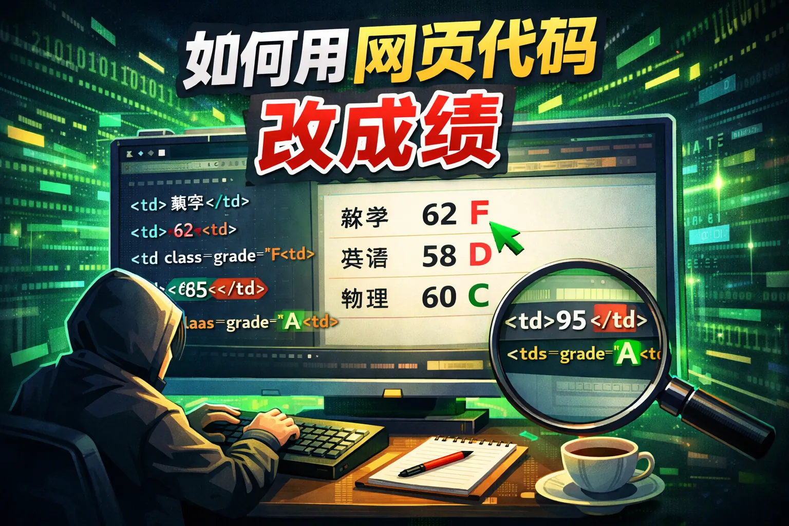 如何用网页代码改成绩