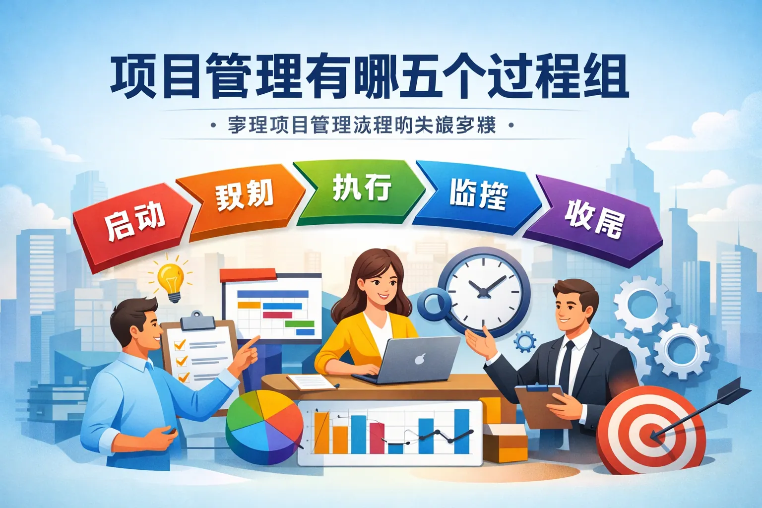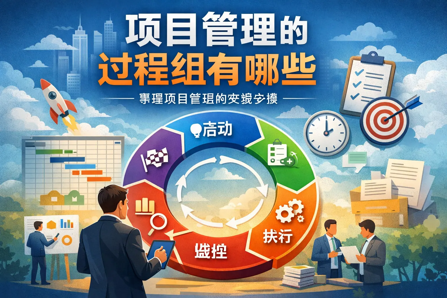 项目管理包含启动、规划、执行、监控与控制、收尾五个过程组,构成完整的管理闭环。启动明确方向与授权,规划制定可执行方案,执行落实成果,监控确保偏差可控,收尾完成验收与经验沉淀。这五个过程组相互交织,适用于传统与敏捷模式,是现代项目管理体系的核心框架。