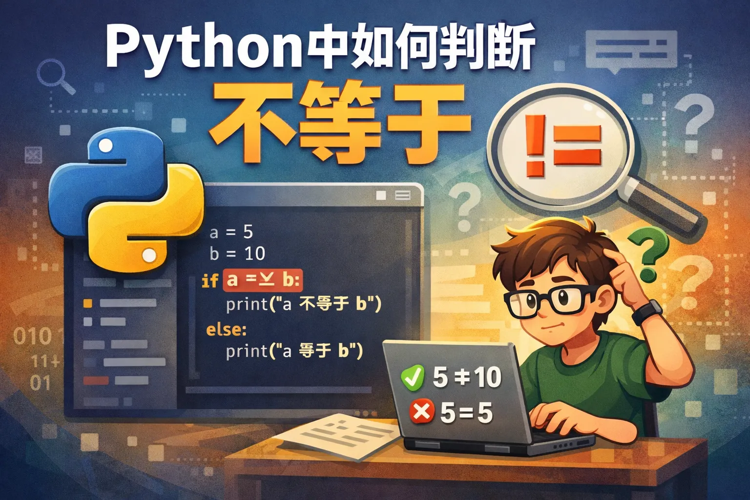 Python中如何判断不等于