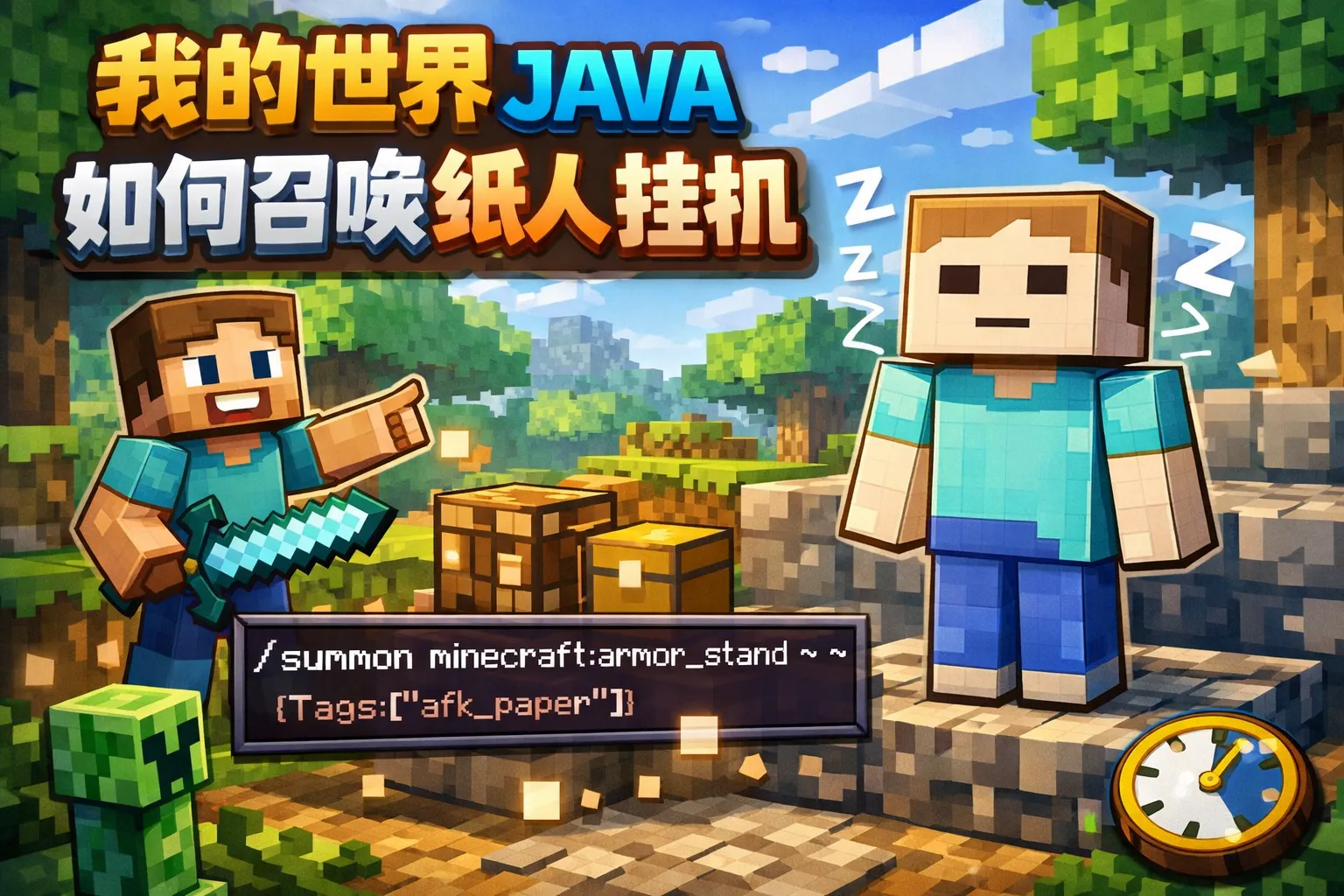 我的世界java如何召唤纸人挂机