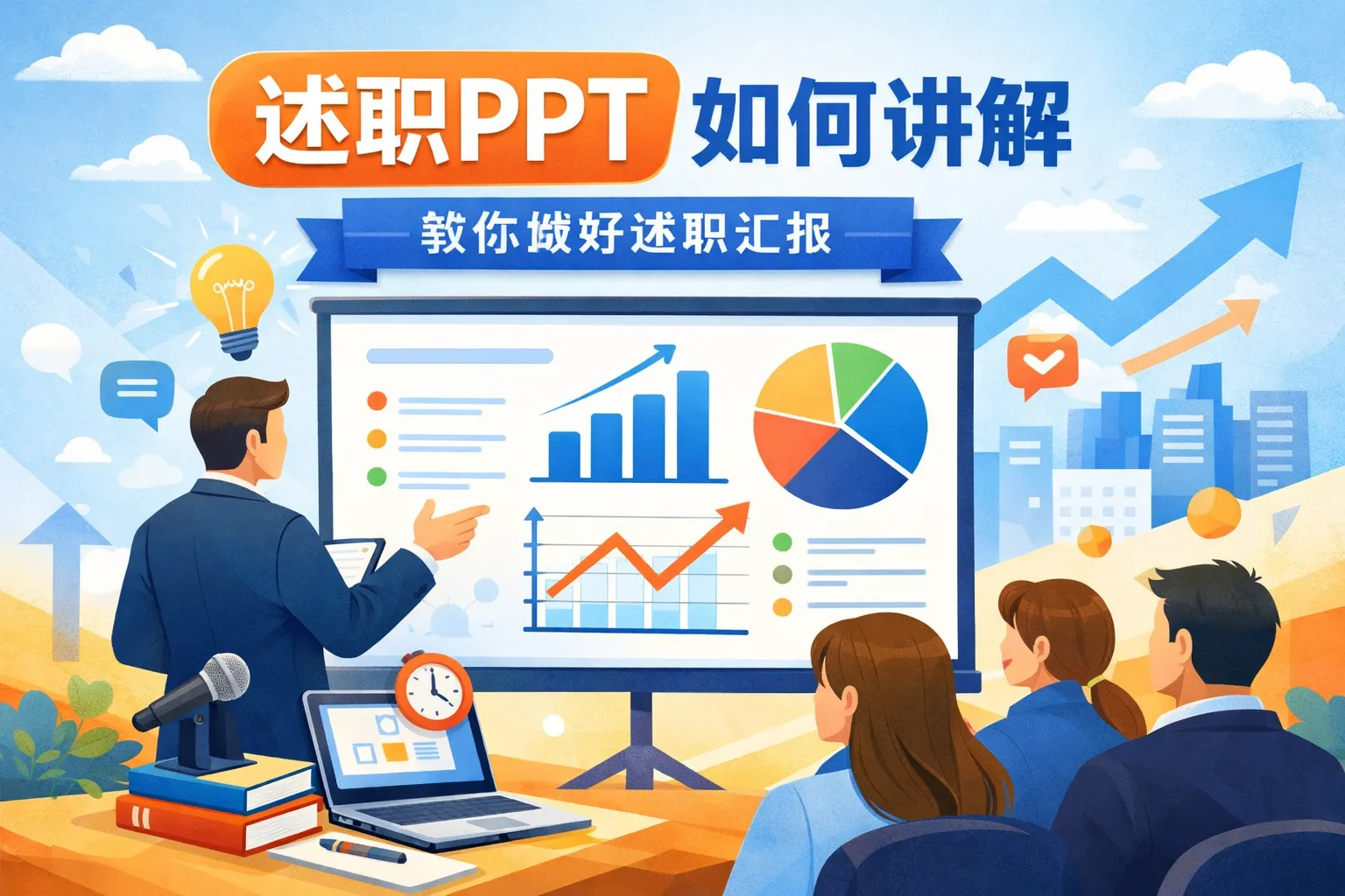 本文从前期受众调研、架构搭建、视觉设计、演讲节奏控制、临场调整以及复盘优化全流程拆解现场述职PPT的制作与演讲技巧,强调以评审官需求为核心定制内容框架,采用三段式叙事结构与可视化设计提升信息传递效率,通过预演与应急预案降低临场失误概率,结合反馈迭代不断优化述职PPT质量,帮助职场人打造高质量现场述职方案。