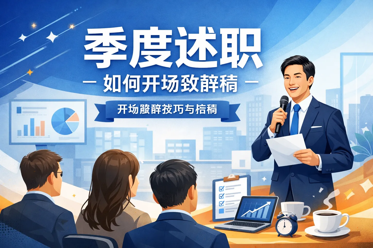 这篇文章围绕季度述职开场致辞展开,讲解了开场致辞需避开的过度自谦、空泛套话、数据堆砌三类常见误区,针对直属领导、跨部门评审、全员公开三类述职场景提供了适配的开场模板与话术框架,通过对比表格呈现了各类场景的核心差异,还结合权威报告给出了场景化设问、精准致谢、风险前置等情绪调动技巧,以及核心关键词前置、数据锚点、未来钩子等信息锚定技巧,最后讲解了录屏复盘、收集反馈、建立素材库等开场优化方法,帮助职场人打造专业高效的季度述职开场。