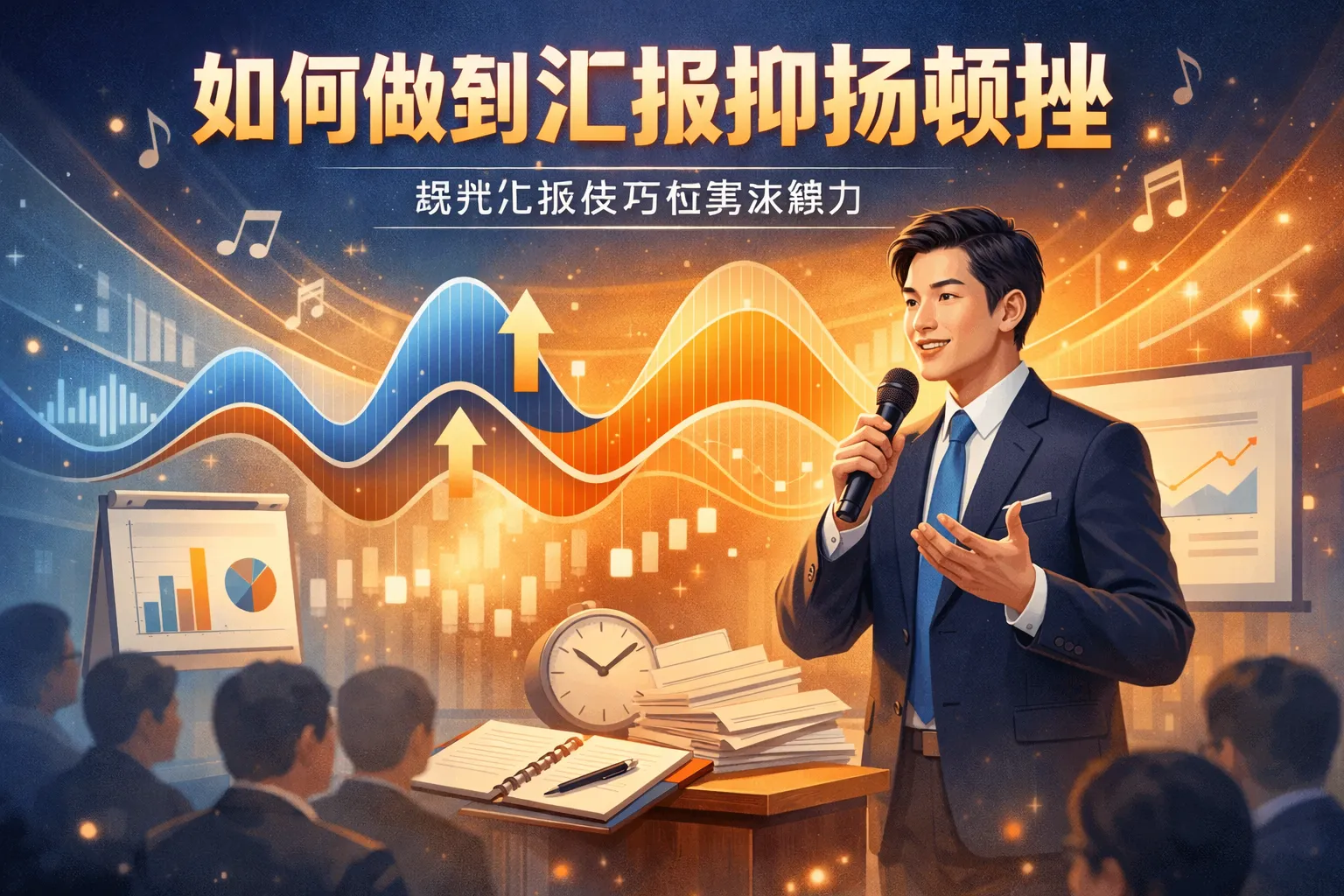 实现汇报中的抑扬顿挫,应以结构为先、声音为器:先用“先结论—后论据—再行动”的框架确定信息起伏,再以音量、音高、语速与停顿四要素为重点做声学高亮;通过日练重音与停顿、周练全程模拟、录音回听与同伴评分闭环迭代;根据线下与线上场景微调动态范围与连读策略,用停顿释放信息、用重音设锚点、用变速控节奏,形成可复用的节奏模板并在协作流程中固化。===