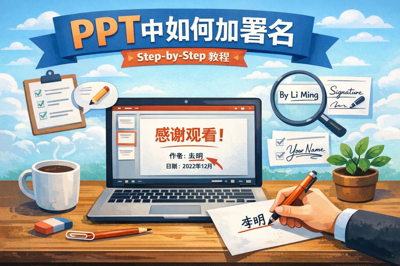 ppt中如何加署名