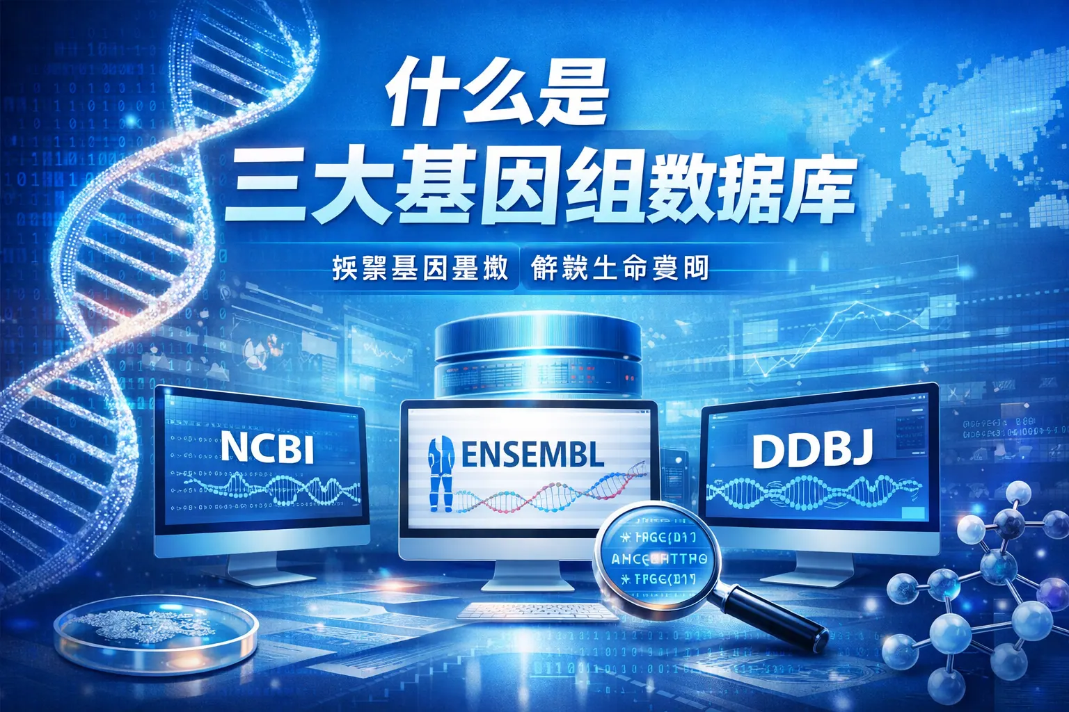 三大分子数据库通常指GenBank、EMBL-EBI(ENA)和DDBJ,它们分别由美国、欧洲和日本的权威机构运营,并通过国际合作机制实现数据同步共享。三者在数据内容上基本一致,均采用统一标准进行核酸序列收录和交换,核心差异主要体现在平台工具生态、服务结构和区域支持能力。它们构成全球生命科学研究的重要基础设施,在基础科研、临床应用和产业创新中发挥关键支撑作用。未来发展将聚焦数据规模扩展、智能化注释与开放共享机制优化。