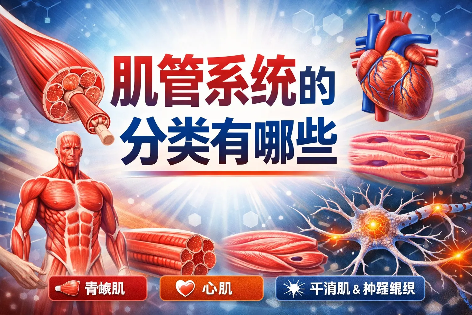 肌管系统主要依据组织来源、功能特性、发育阶段和工程构建方式进行分类,核心包括骨骼肌管系统、心肌管系统和平滑肌管系统三大类型。不同肌管系统在结构特征、收缩机制、神经调控方式及疾病关联方面存在显著差异,同时在组织工程和再生医学领域又衍生出多种功能模型分类。随着生物技术和人工构建技术的发展,肌管系统的分类体系正逐步从传统组织学划分扩展为多维综合框架。未来其在疾病建模、药物筛选和精准医疗中的应用将更加深入。