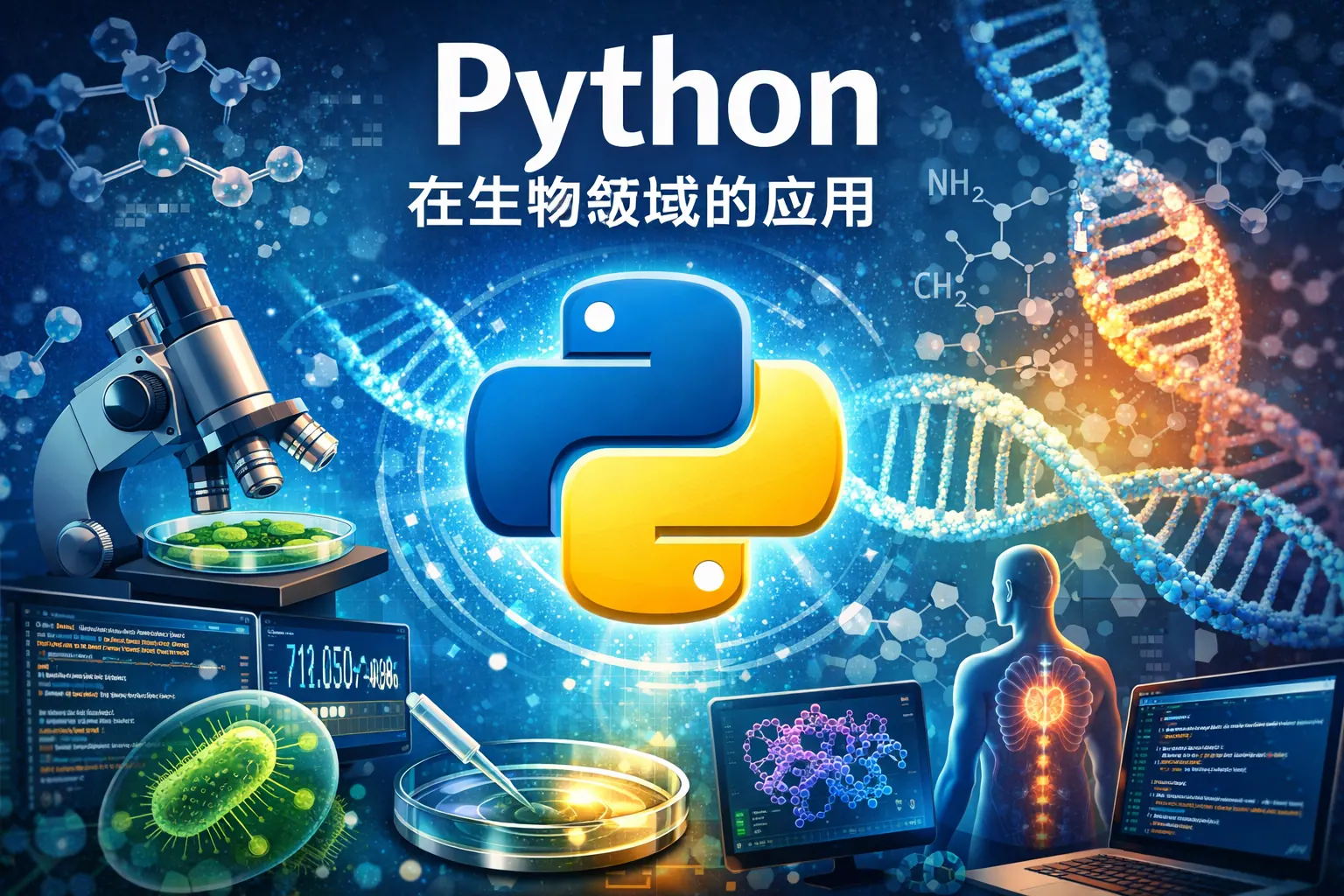 本文系统阐述了 Python 在生物领域中的核心应用价值,从生物信息学、基因组学到系统生物学,分析了其在数据处理、建模与科研协作中的作用。文章指出,Python 以易用性和生态成熟度推动了生物研究范式向数据驱动转型,同时也讨论了其在性能与未来发展方面的挑战与趋势。