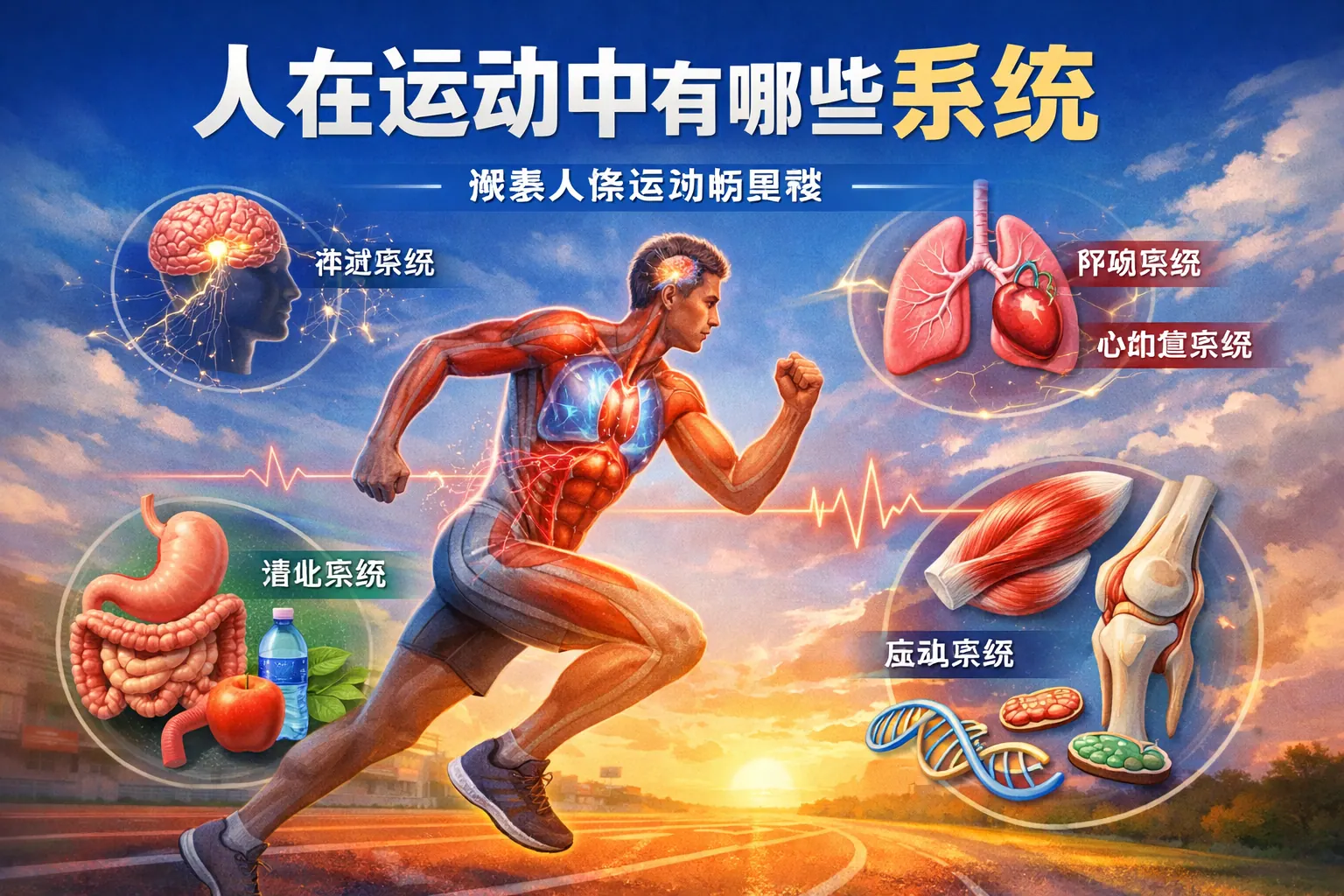 人在运动时会同时调动运动、神经、心血管、呼吸、能量代谢、内分泌、免疫和体温调节等多个系统协同工作。神经系统负责指挥与协调,运动系统完成动作执行,心肺系统提供氧气与营养,能量代谢系统供给ATP,内分泌系统调节适应与恢复,免疫与体温系统维持稳定环境。各系统相互配合形成整体调控机制,是实现运动表现与健康提升的生理基础。理解这些系统的功能与协同关系,有助于科学训练与运动风险管理。