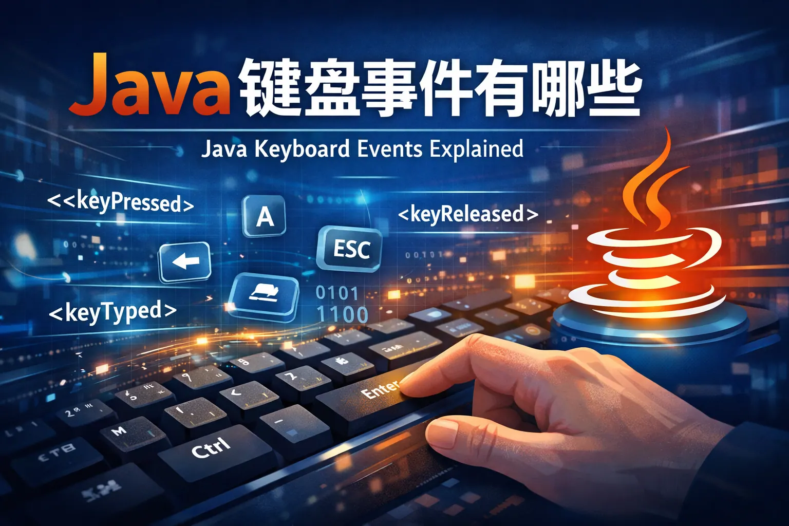 Java 中的键盘事件主要由 KeyEvent 表示,并通过 keyPressed、keyReleased 和 keyTyped 三种形式反映用户的不同键盘操作阶段。KeyListener 和 KeyAdapter 提供了基础监听能力,但在 Swing 应用中更推荐使用 Key Bindings,以获得更好的焦点控制和可维护性。理解按键与字符的区别、事件触发条件以及不同处理机制的适用场景,是正确使用 Java 键盘事件的核心。随着 UI 架构演进,键盘事件处理正逐步向更高层次的意图绑定发展。