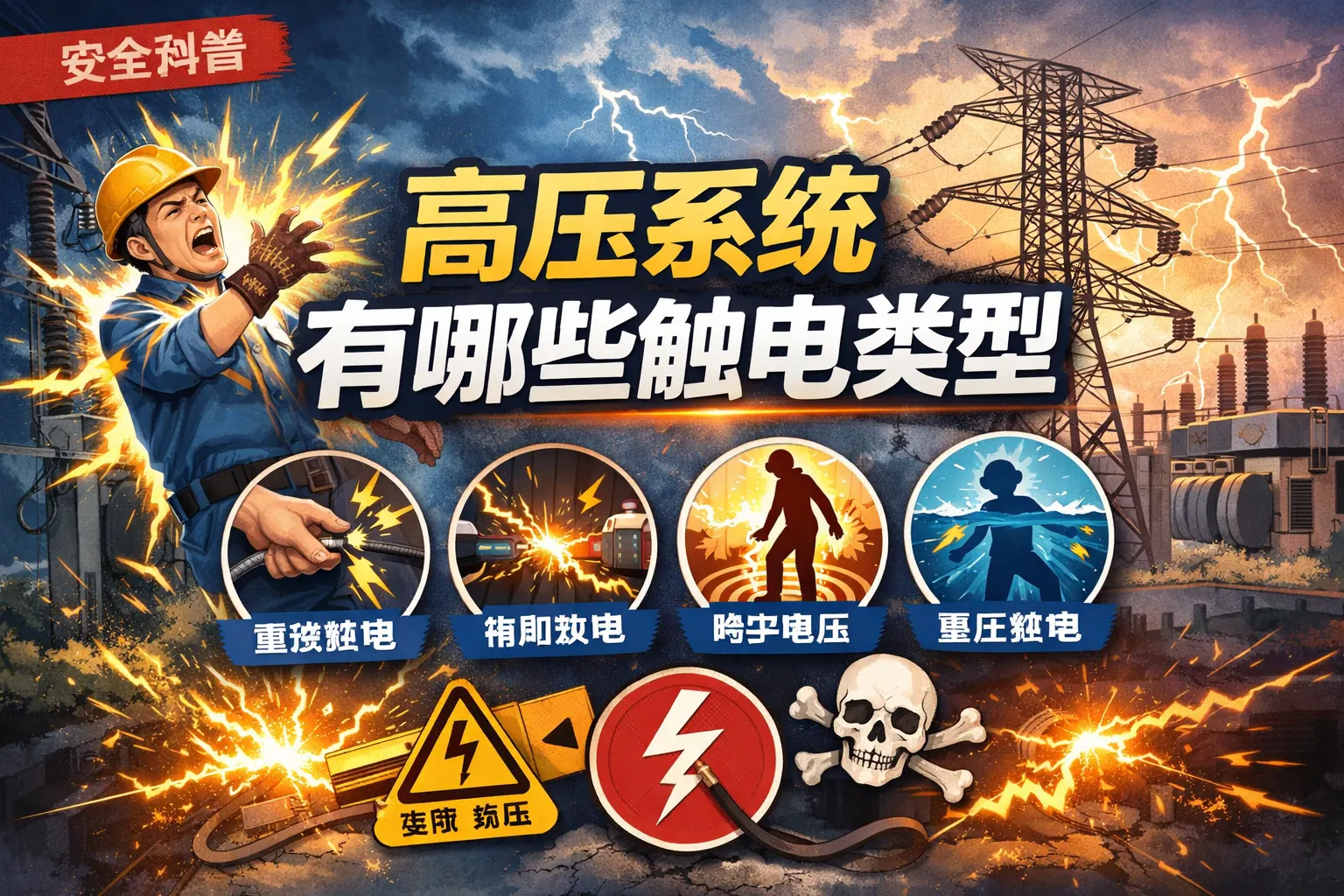 高压系统的触电类型包括直接接触触电、间接接触触电、跨步电压触电、接触电压触电、感应电压触电以及电弧型触电等多种形式,其危险性不仅来源于高电压本身,更与电流路径、接地系统设计及电弧效应密切相关。高压环境下即使未直接接触带电体,也可能因电位差或电磁感应而触电,因此必须通过规范接地设计、绝缘隔离、实时监测及标准化操作流程,系统降低触电风险。随着智能化技术应用,高压电气安全正向数字化预警与主动防护方向发展。