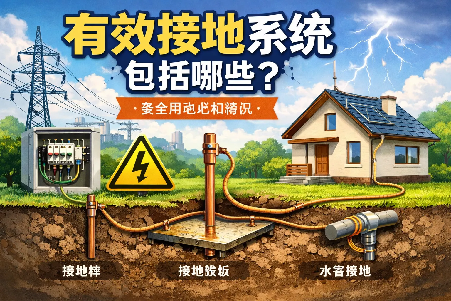 有效接地系统包括工作接地、保护接地、重复接地、等电位联结和防雷接地等组成,其核心作用是在故障或雷击情况下迅速泄放电流、稳定电位差并保障人身与设备安全。不同供电系统如TN、TT、IT在接地结构上存在差异,但都必须满足低阻抗、可靠连接和保护装置可有效动作等技术要求。随着智能建筑和新能源发展,接地系统正向数字化监测与智能预警方向演进。