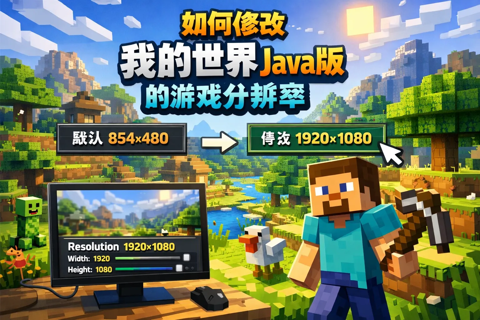 如何修改我的世界java版的游戏分辨率