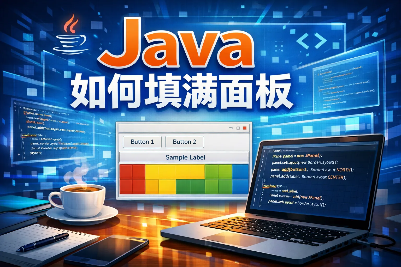 本文围绕Java面板填满父容器的需求展开,讲解了面板填满的核心逻辑与常见适配误区,详细介绍了五大主流布局管理器的填满实现方案,搭配跨平台适配技巧与动态场景下的状态维护方法,同时结合行业报告数据给出性能优化与问题排查思路,帮助开发者搭建无留白的全屏Java UI界面。