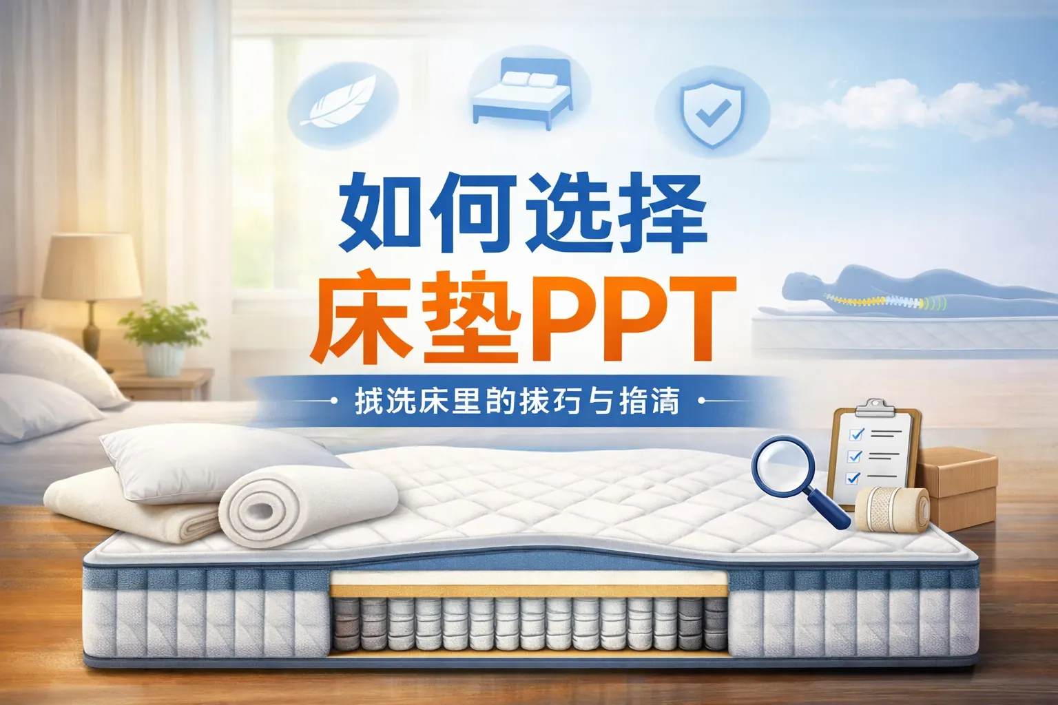 选择床垫PPT的核心在于围绕睡眠健康与科学支撑原理,系统讲解床垫类型、软硬度匹配、材质安全与选购方法,并结合权威研究与真实品牌案例进行对比分析。通过结构清晰的内容设计、表格化对比和场景化建议,可以帮助观众理解不同床垫的适用人群与使用差异,避免常见消费误区,从而做出更理性、符合自身需求的购买决策。同时,兼顾环保认证与售后保障,是完整床垫选购知识体系的重要组成部分。