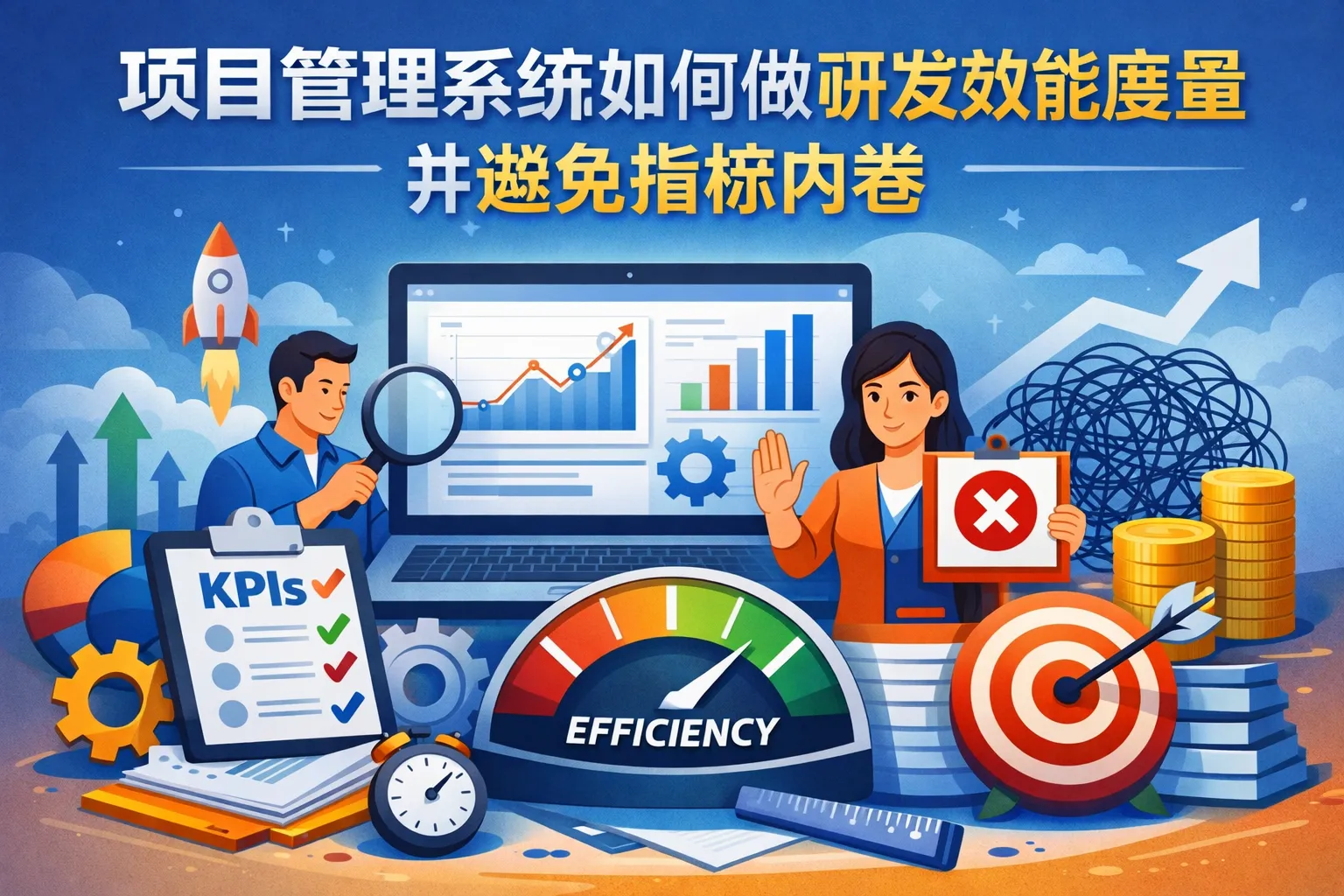 项目管理系统要做好研发效能度量并避免指标内卷,应以业务目标为北极星,构建“目标—指标—数据—治理”的闭环;以DORA为核心,补充质量、流程与价值指标形成平衡篮子;用标准化数据血缘与合规治理保障可信;仪表盘按角色分层、以趋势与洞察驱动改进行动,不做个人排名;通过护栏管理与灰度引入减少刚性KPI副作用;按“试点—基线—扩散”推进,并在工具选型中关注开放与合规,结合平台工程与可解释AI,持续提升交付速度与稳定性、压制内卷与刷分行为。